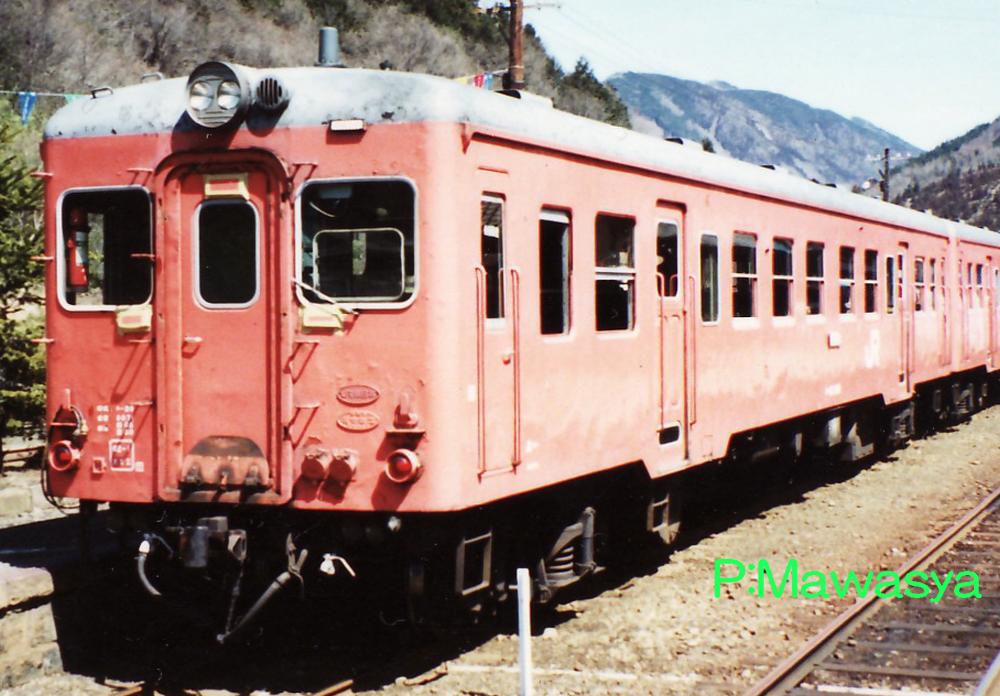 勾配線区向けの形式で昭和33年に登場。キハ20形式に2基のエンジンを搭載したものです。キハ20形式に準じた設計ですが、エンジンや変速機、放熱器を2基搭載する必要があり、車体を1300mm延長し、21300mmとしています。その為、乗降扉間の客室窓は1つ増え、6枚となっています。初期となる0番代はキハ20形式と同じ、DMH17C形式を搭載。室内灯は白熱灯、暖房装置も温風式のものとなっています。写真の47番は爪クラッチ式液体変速機を試験的に搭載しており、エンジンも330PSの直噴エンジンに換装していました。この結果はキハ200系に活用されています。