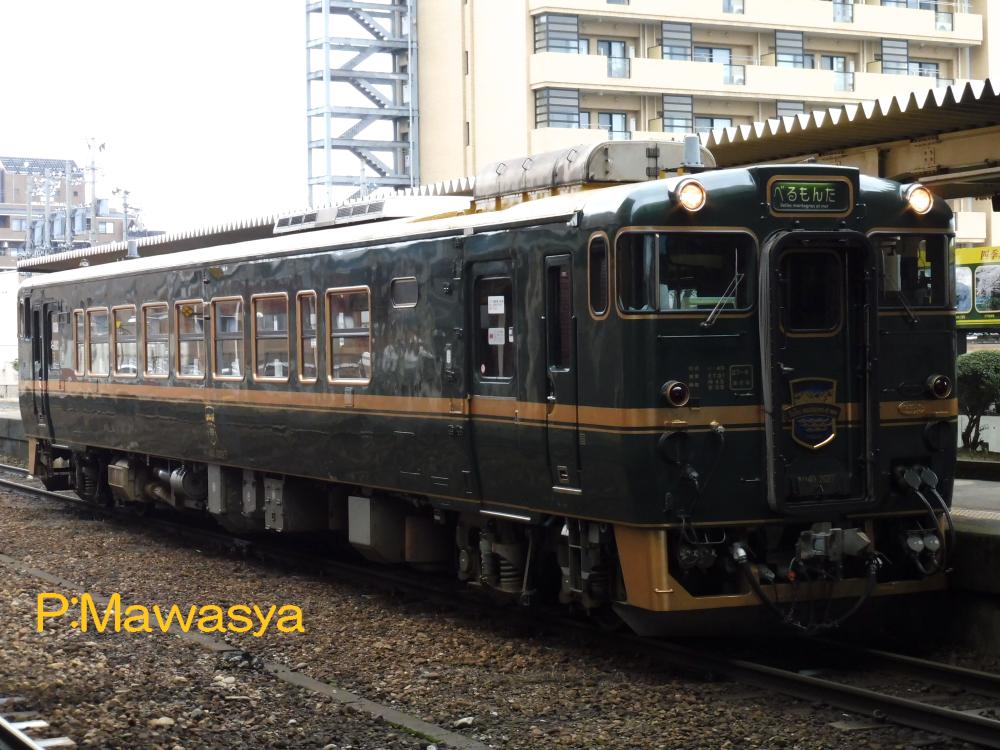 平成27年に登場した団体専用の観光列車です。九州に初めて鉄道を開通させた九州鉄道が明治時代末期に導入した豪華客車をモデルとしたもので、JR四国に所属していたキハ47