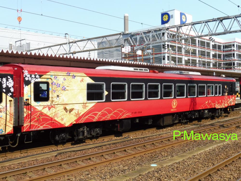 愛称は「漫遊(まんゆう)」と命名。「漫遊」の由来は「水戸黄門漫遊記」からです。編成はキロ48 1(華-HANA-)+キロ48 2(風-FU-)+キロ40