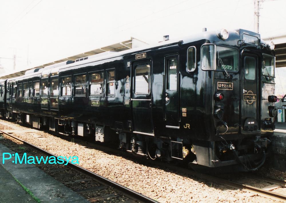 平成16年、九州新幹線部分開業に伴い、吉松~鹿児島中央駅間(肥薩線・日豊本線経由)に特急「はやとの風」号が設定されました。当初は臨時列車でしたが、平成18年より定期列車に格上げされました。この特急列車用の車輛として、キハ140形式、キハ147形式を1両ずつ改造したもので、座席をリクライニングシートに変更し、内装に難燃木材を使用して温かみのあるものとしています。中央部は屋根まで至る大型窓に改造し、コモンスペース(展望席)を設置しています。