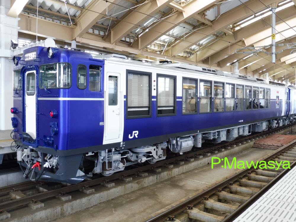改造は「青池編成」に準じたものですが、非貫通構造車の先頭部のデザインが少し変更となっています。車内はほぼ同じとなっています。編成はキハ48 701+1701+702の3両編成です。