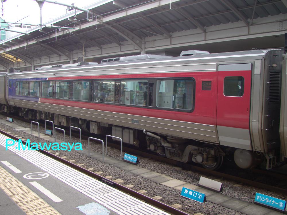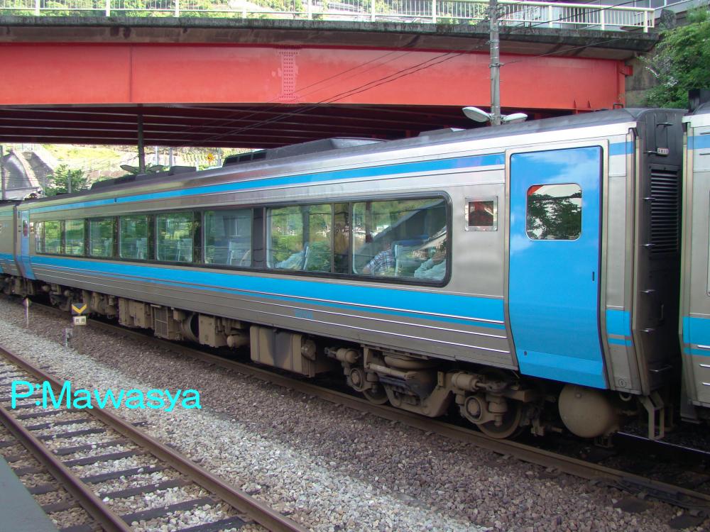 量産車の非貫通構造の先頭車です。先行試作車では普通席でしたが、グリーン席と普通席の合造車となっています。各車輛に振り子制御装置に傾斜タイミングの指令を出す制御指令装置(CC装置)を搭載しています。トイレ、洗面所、車内販売準備室の設備があり、車内販売準備室は後に撤去され、清涼飲料水の自動販売機が設置されています。平成19年頃より、乗降扉の窓ガラスが小型化しています。
