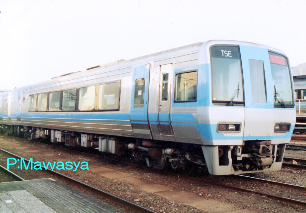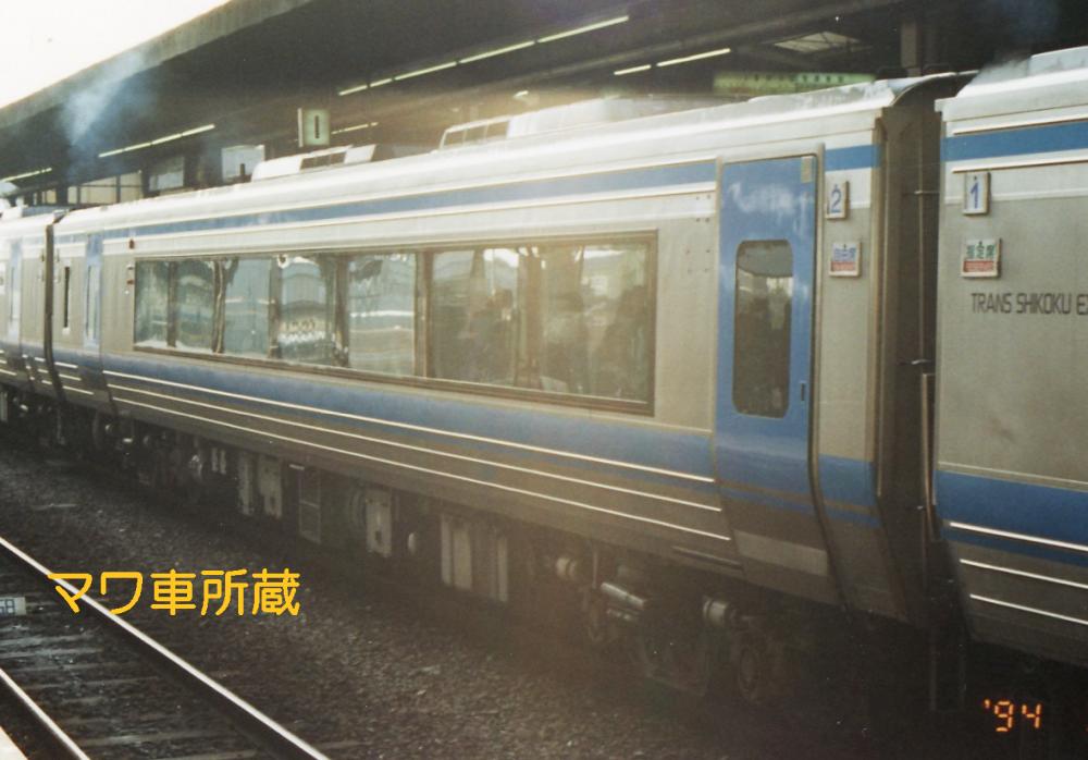 平成元年に登場した最初のグループで、「TSE」=Trans Shikoku Experimentalの愛称が付けられました。登場時は量産化が出来ない場合を考え、ソファーを配置した区画やAV機器を搭載し、前面展望の映像を流せるようにした他、座席を窓側に向け、固定出来るようにする等、団体専用車輛としての転用を想定して設計されているのが特徴でした。(量産化改造時にこれらは撤去や固定化されています。)