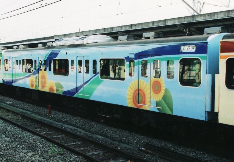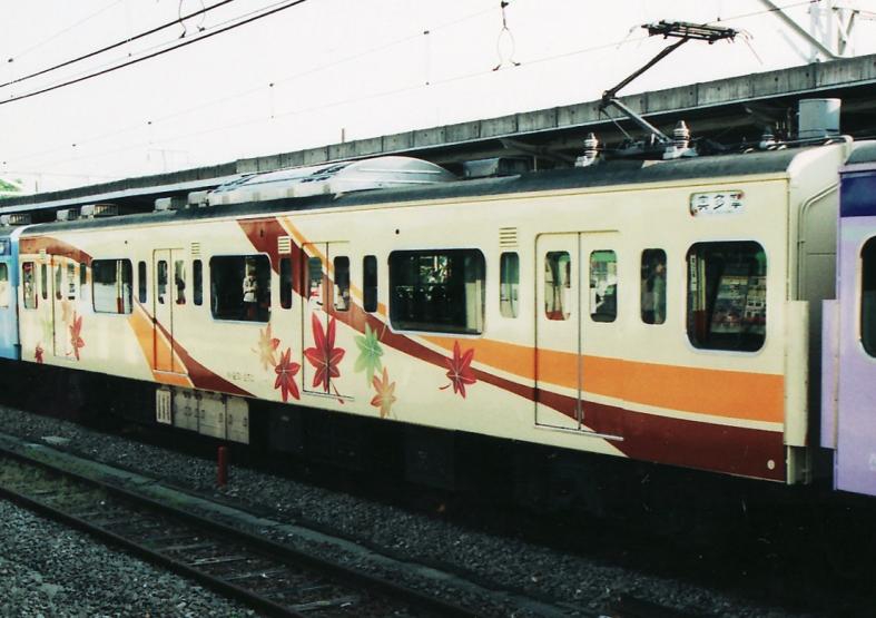 平成13年に登場したジョイフルトレインです。乗務員の訓練車扱いであった4両編成1本を青梅線のイメージアップを目的に展望型電車に改造しました。公募により「四季彩(しきさい)」と命名されました。