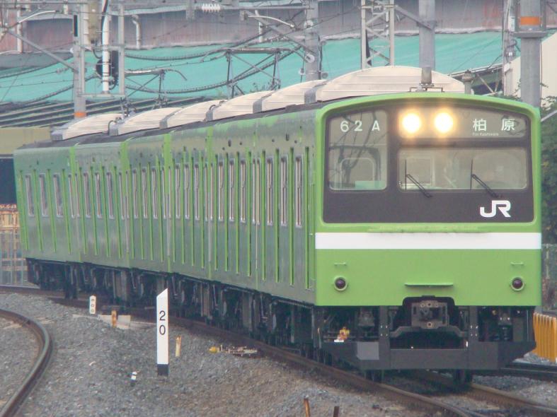 201系では山手線の色になっていたであろうウグイス色(黄緑6号)に白色の警戒帯を巻いた姿になりました。(写真右)この路線が最後の活躍の場になる予定となっており、201系の終焉の時も近いようです。