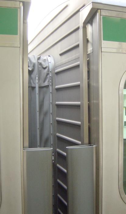本番代では電気式戸閉装置の試用が行われました。従来は空気式で開閉の度に圧縮空気が使用され、一定値まで減ると電動空気圧縮機が動作し、必要な量を供給します。都市部では開閉回数が多いため、電動空気圧縮機の動作回数も増え、メンテナンスもかかります。これを改善するために電気の力を使用する方法が考えられたのです。電気式では同時に自動開閉機能が試用されています。閉扉時に何かが挟まった際に生じる電圧を検知し、それにより自動で再度開扉し、少し経って閉扉する仕組みです。量産車が登場した後も、試験、開発が行われました。この電気式戸閉装置は0番代の3次車より正式に採用され、以降登場する車輛で一般的なものとなっていきました。