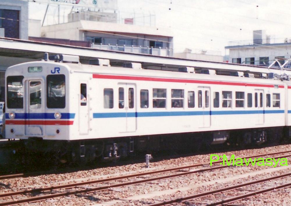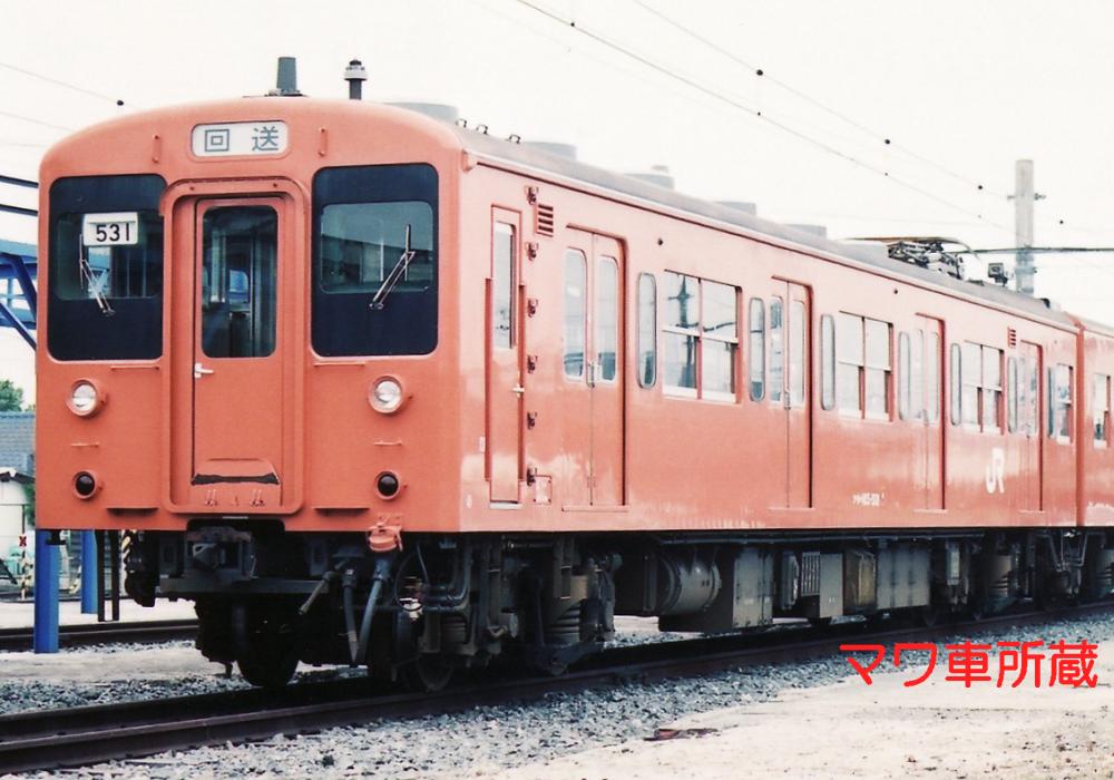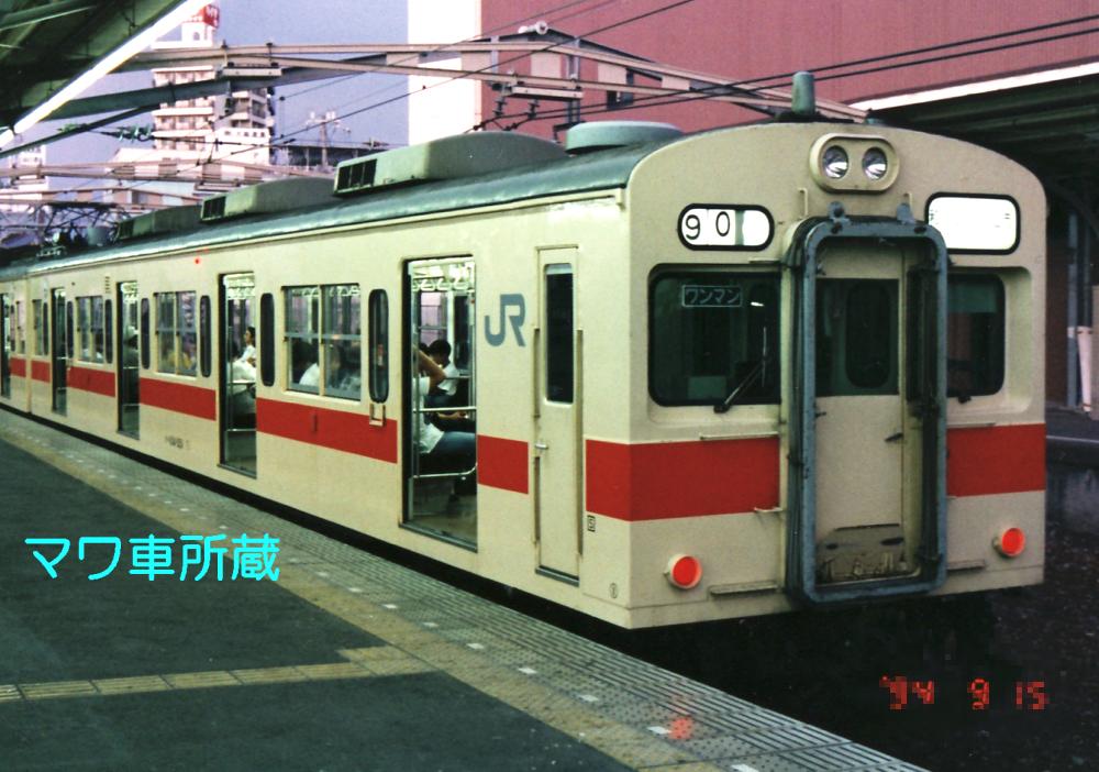 昭和59年、奈良線、和歌山線、紀勢本線和歌山市支線の電化開業用及び可部線の新性能電車化を目的に登場しました。台所事情が火の車であった当時、新製数を抑えたい所に、常磐緩行線で103系1000番代から203系への置換えがあり、大量の103系が捻出されました。この103系を種車にする事となったため、新製車が片側3扉であるのに対し、4扉となっています。