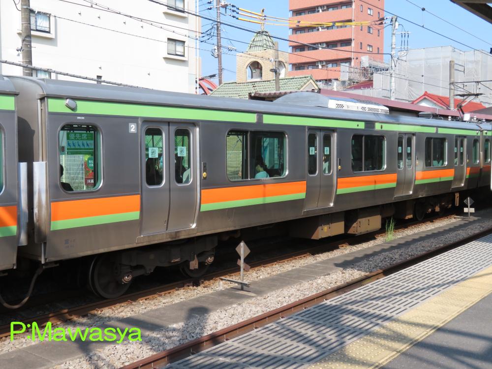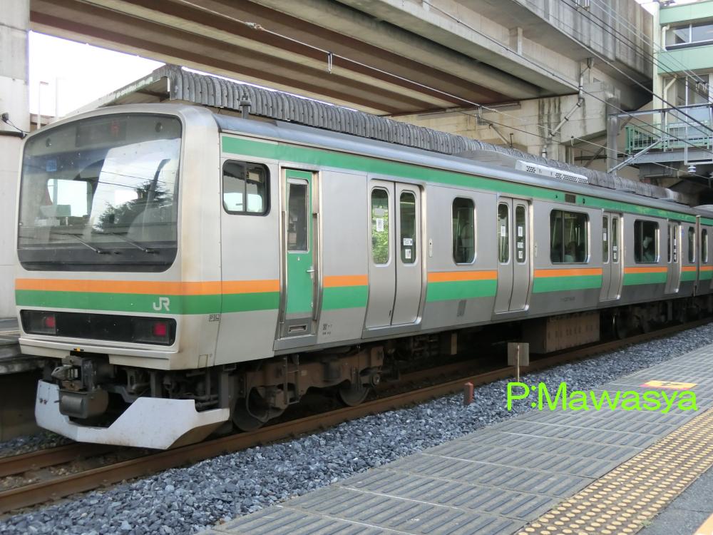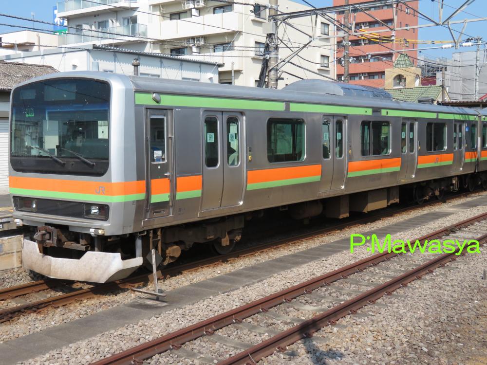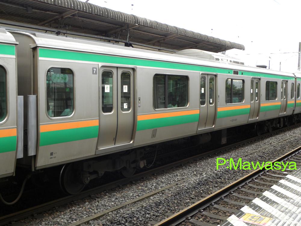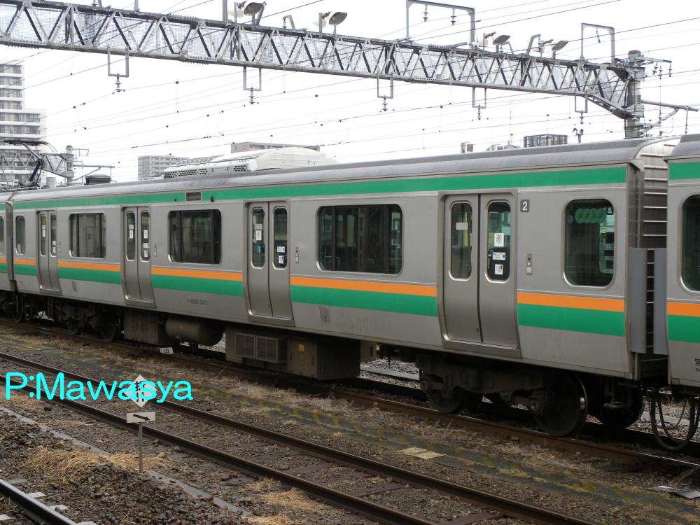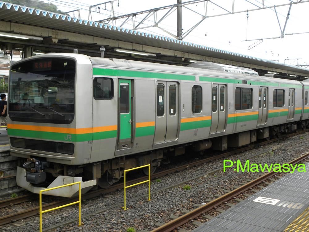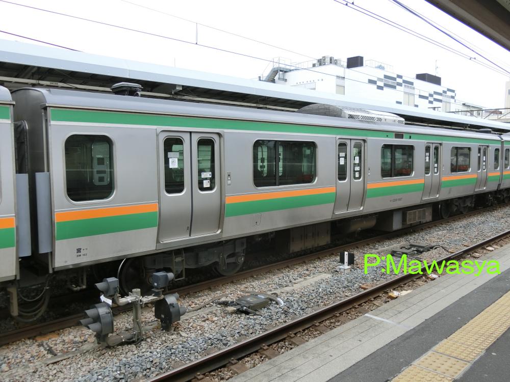 八王子・高麗川方の偶数向き制御車です。クハE230-1~を改造したもので、車内の暖房強化、半自動機能の追加等が行われています。写真はワンマン運転に伴い、安全確認カメラや車外スピーカーが増設された現在の姿です。