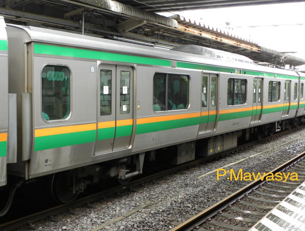 12両貫通編成の10号車(10両貫通編成時は8号車)に位置するパンタグラフ付き中間電動車です。モハE233-201~と同じですが、ユニットとなる車輛(番代)が異なる為、区分されています。