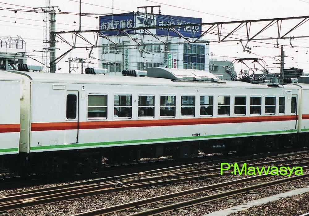 パンタグラフ付き中間電動車です。モハ164形式と同じ構造で、パンタグラフ部分は低屋根構造となっています。