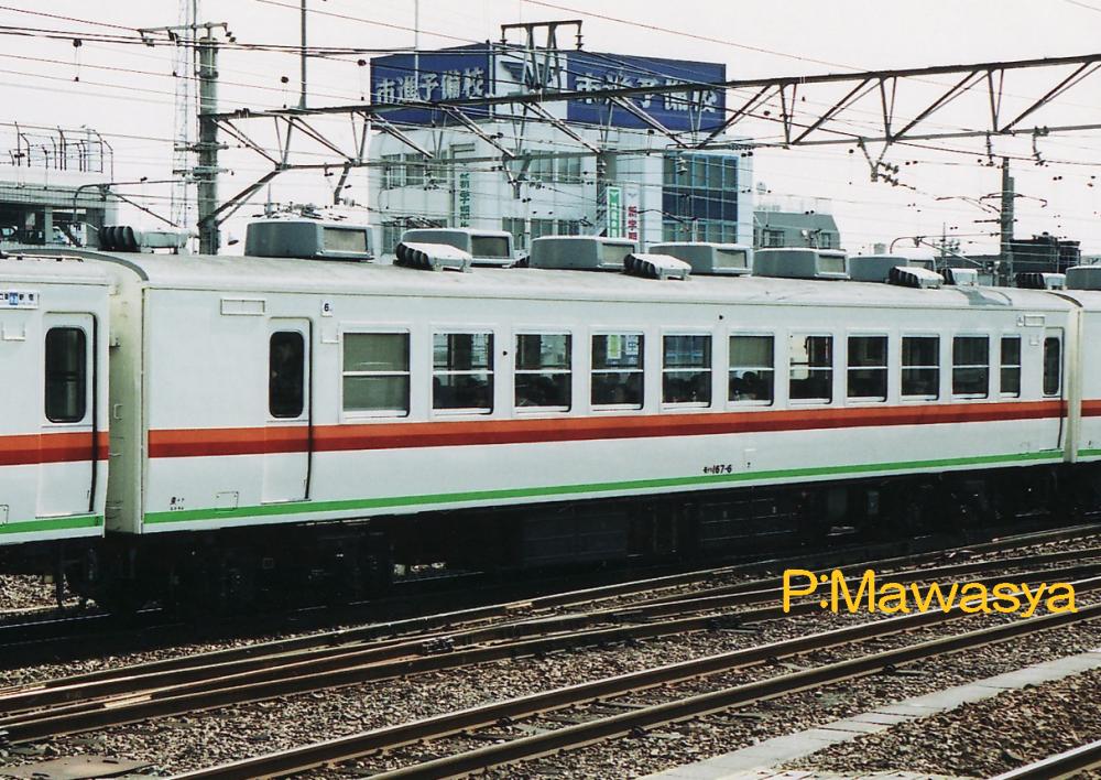 モハ166形式とユニットを組む中間電動車。主制御機器等を搭載しています。モハ165形式と同じですが、乗降扉は700mmと狭いのが違いとなっています。