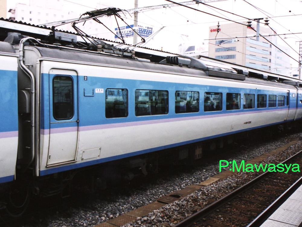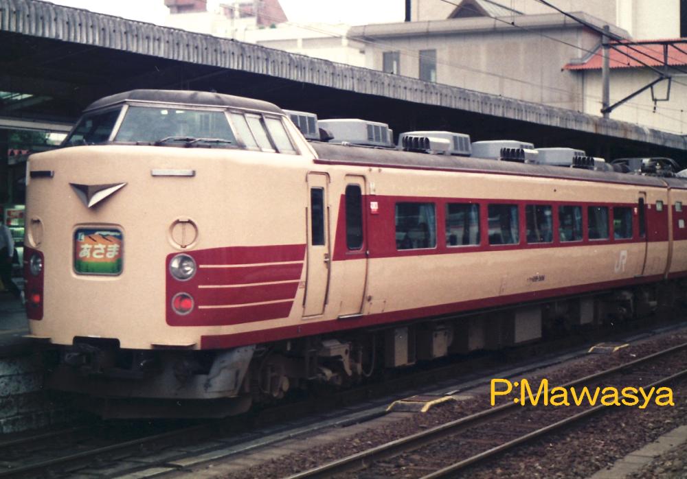 クハ189-101~と同じサハ481形式100番代を先頭車化改造したもので、偶数向き制御車としたものです。改造内容は同じです。写真は183系1000番代の特急「あずさ」号と同じく、アコモ改良を施したグレードアップ車輛で、特急「あさま」号に活躍しました。