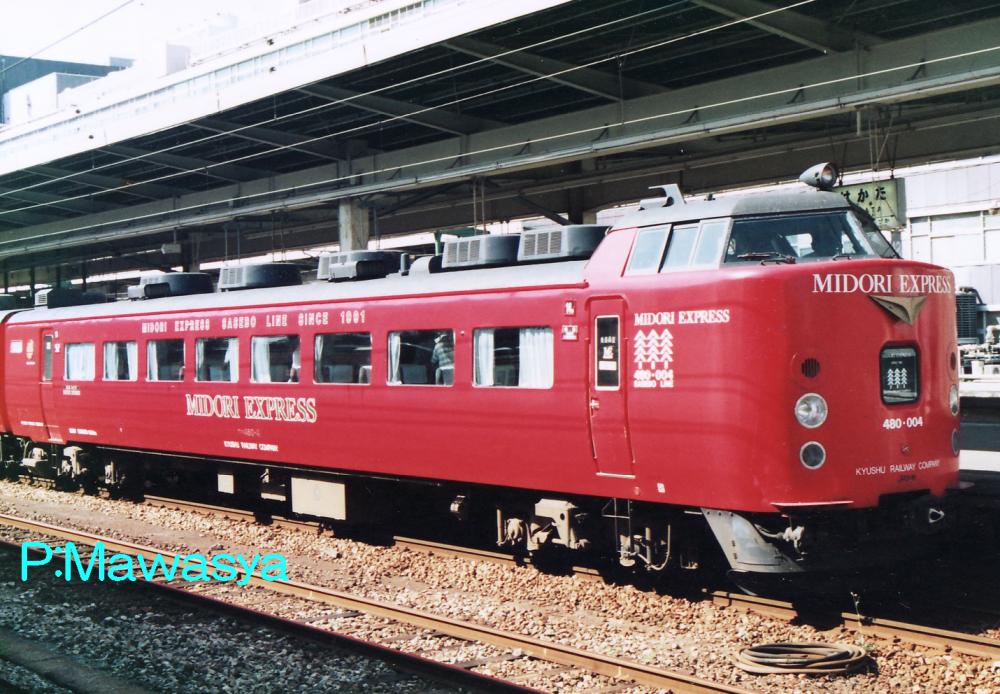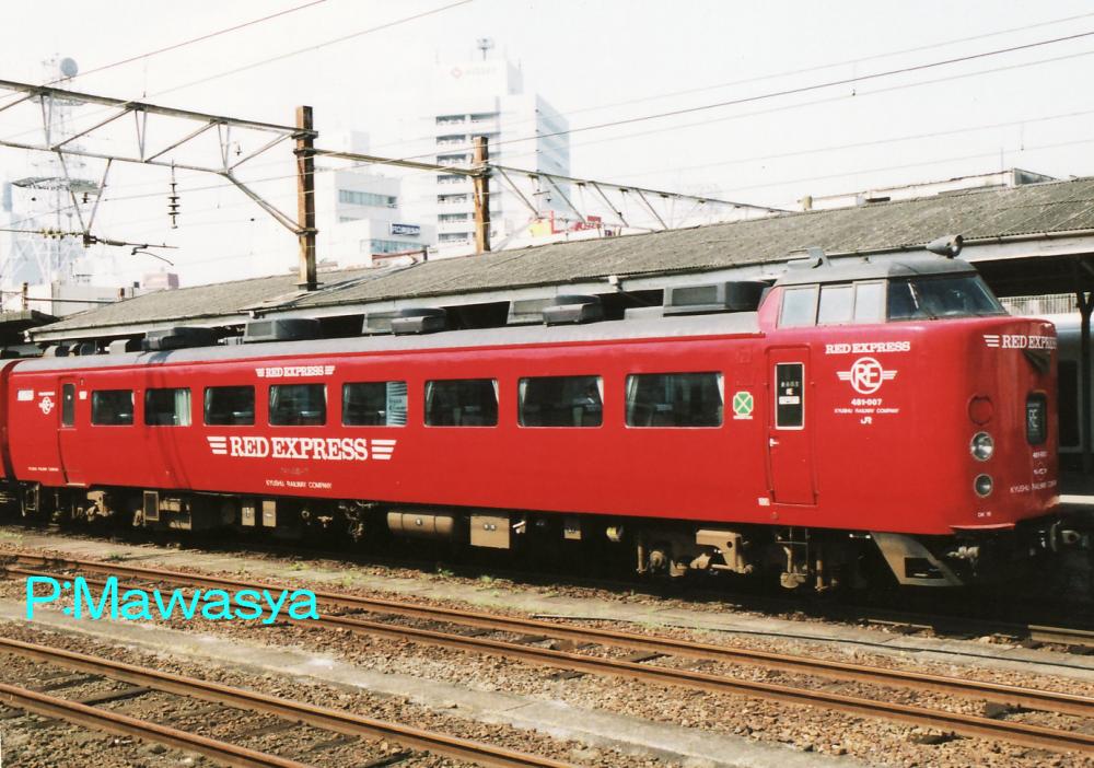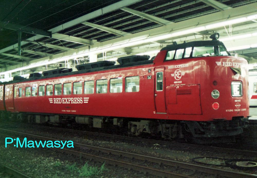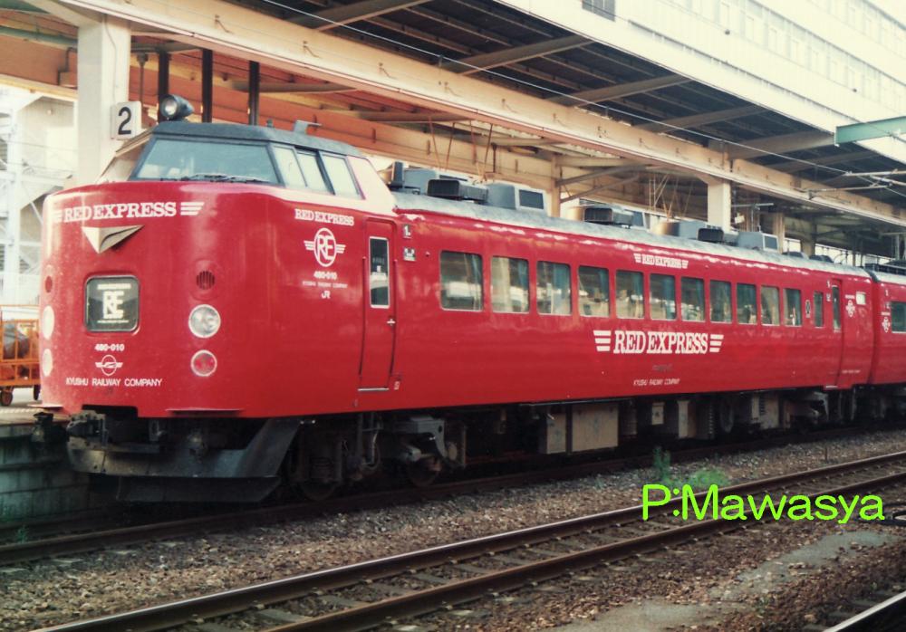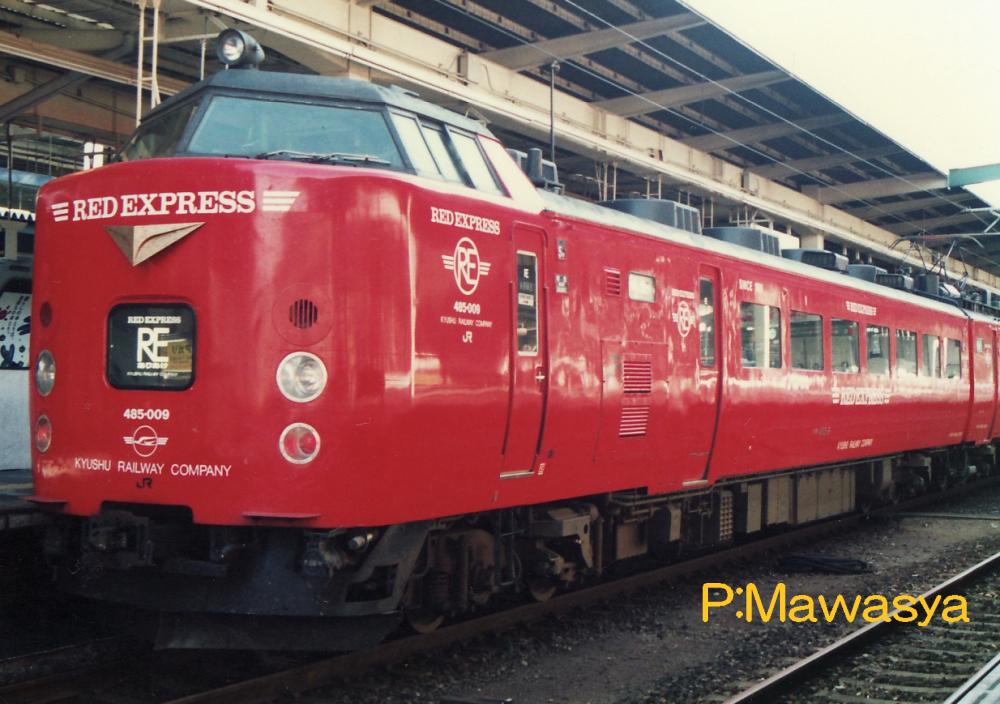 JR九州では783系以降に登場した車輛の格差を改称する目的で平成元年より「RED EXPRESS」シリーズを始め、485系は赤い車体に変更されました。様々な小改造が施されており、その1つに5両編成に組み込まれるモハ485形式はトイレ、洗面所を業務用室(車掌室)に改造していました。