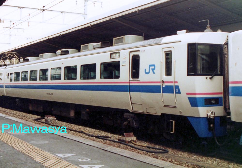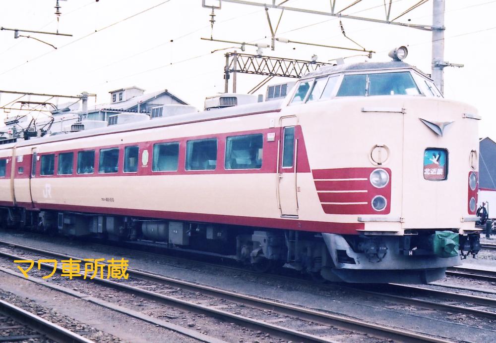 昭和61年に特急「北近畿」号向けにクハ481形式200番代を種車に改造したグループです。九州地区向けの200番代と同じ改造ですが、普通席の仕切り部分を小窓に改造する等の違いがあります。同様にクハ481形式300番代を種車に改造したクロハ481形式300番代も2両ありました。