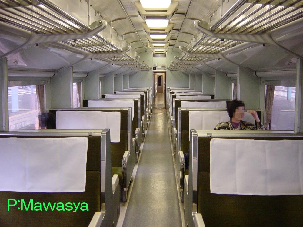 581系登場時には無かった形式で、東北地区昼行特急列車運転時には必要と判断し、583系登場と共に加わった形式となります。車内設備はサロ481形式に準じたリクライニングシートを配していますが、トイレは両端に配したサロ481形式とは異なり、583系他車と同じく前位側2ヶ所とし、和式、洋式をそれぞれ配置しています。