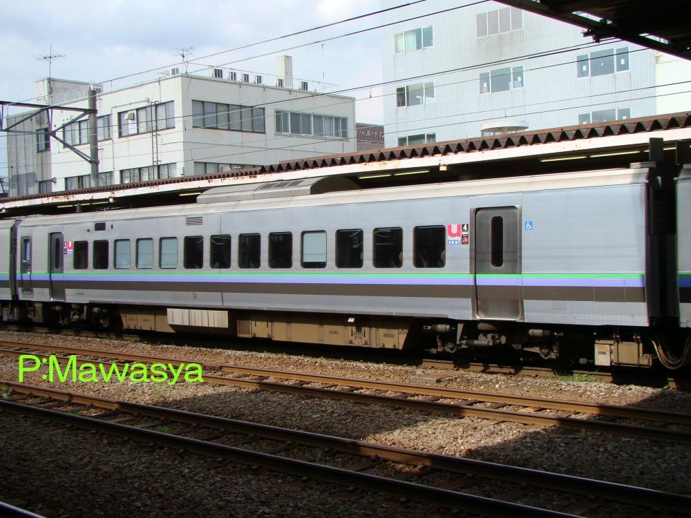 函館(旭川)方の制御車。電動空気圧縮機、補助電源装置を搭載しています。車内はグリーン席と普通席の合造車で、後位側に車内販売準備室、車いす対応トイレ、洗面所の設備があります。