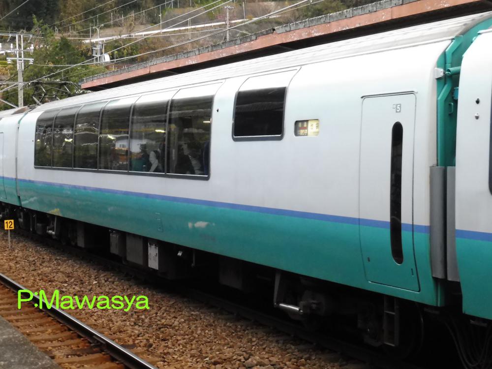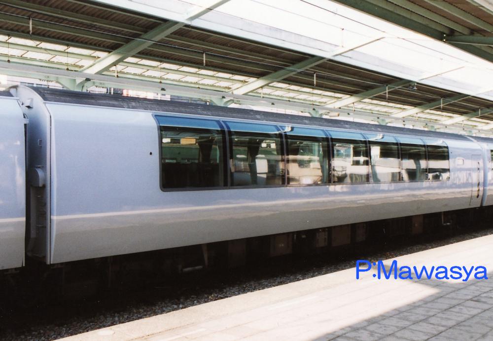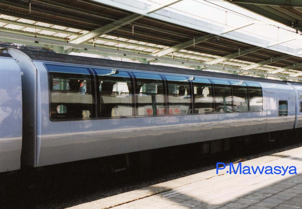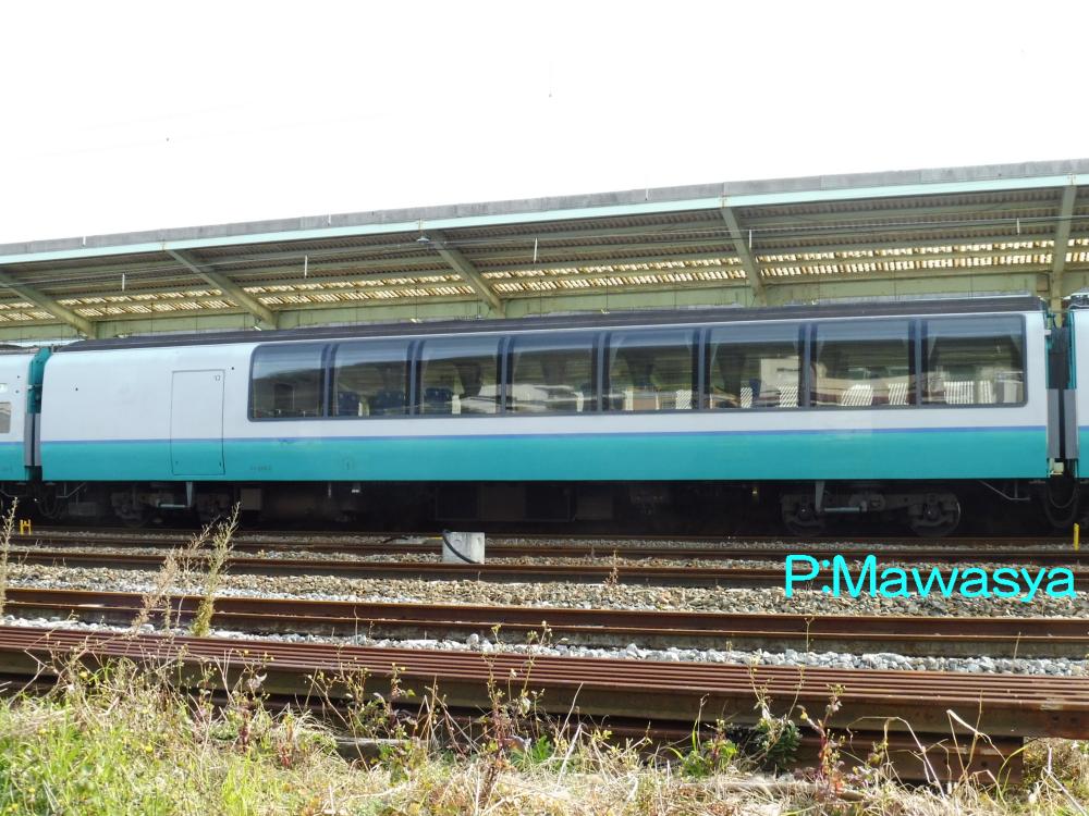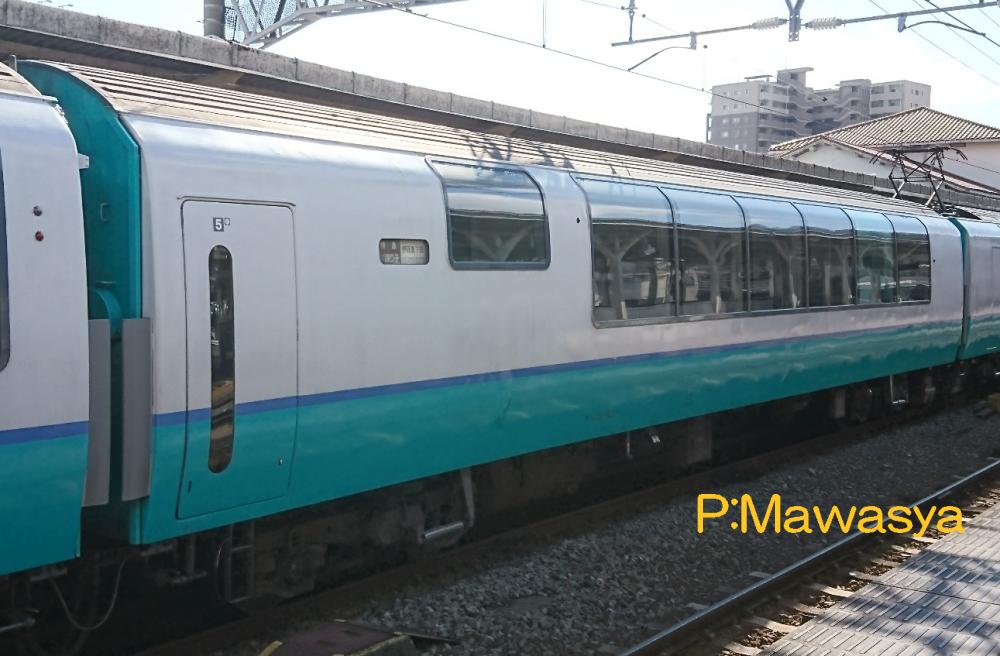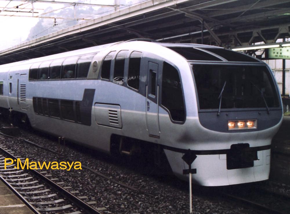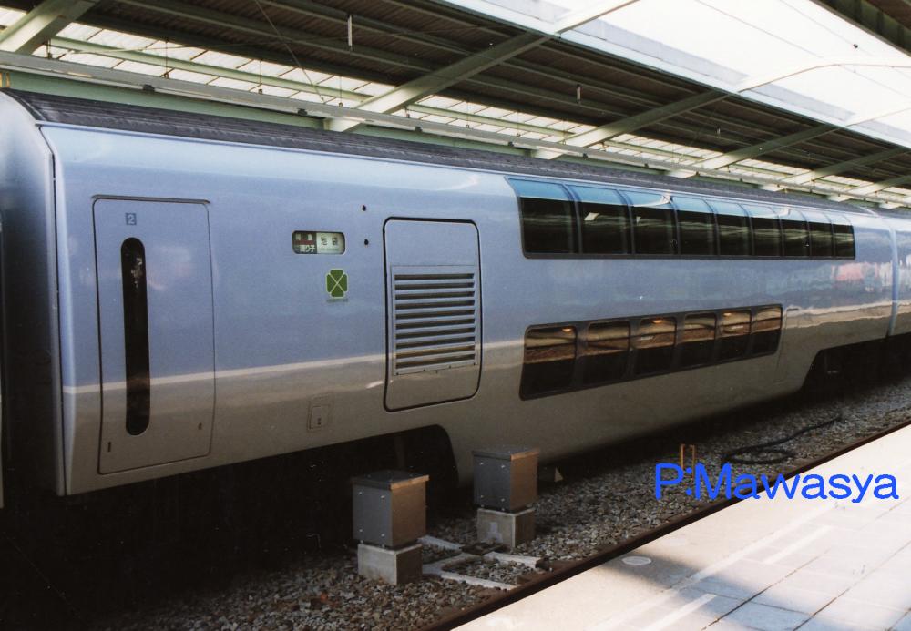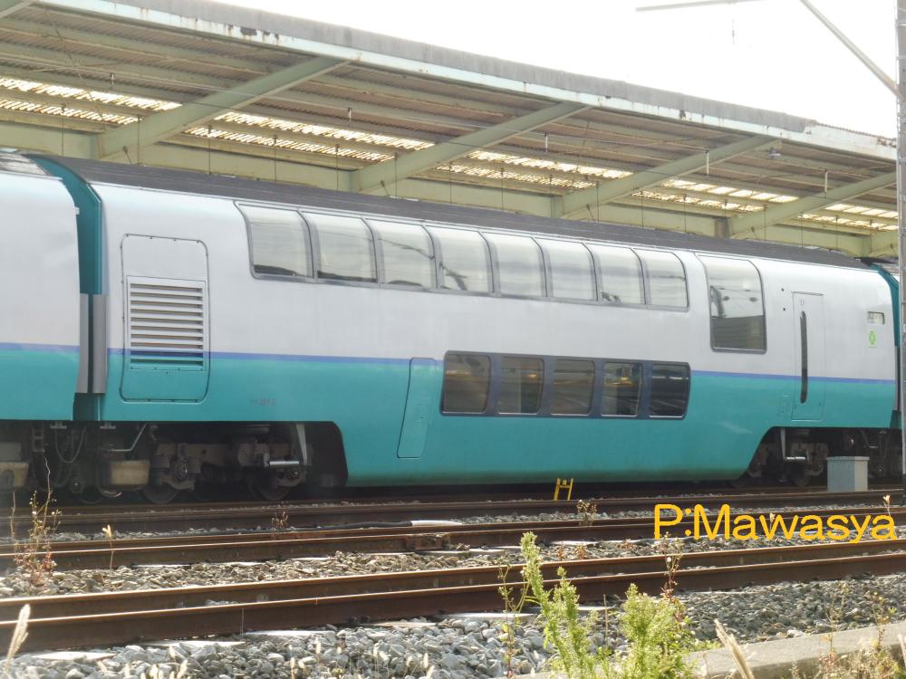 東京方に位置する制御車で、ダブルデッカー構造の普通車です。乗務員室後方に展望席、2階部分が普通席(4人掛けのセミコンパートメント)、1階は子供用プレイルームになっています。この他に業務用室(車掌室)、荷物置き場、授乳室の設備があります。1次車の前面ワイパーは3連、2次車は2連となっています。