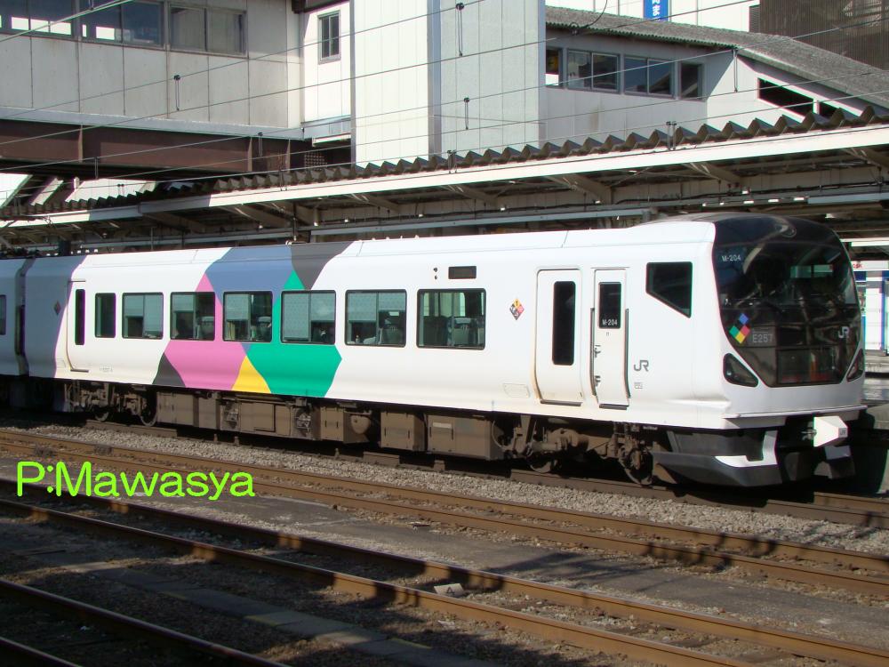 基本編成の10号車に位置する中間電動車で、基本的にはモハE257-1~と同じ。モハE257-101~とユニットを組みます。イラストは「道祖神」です。