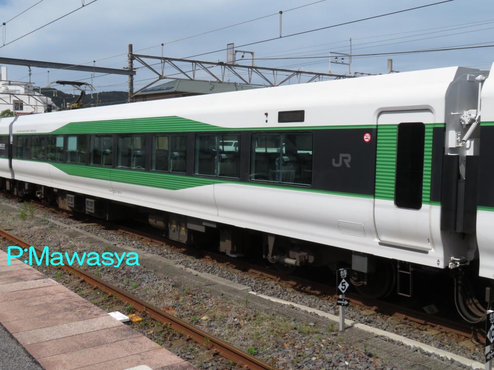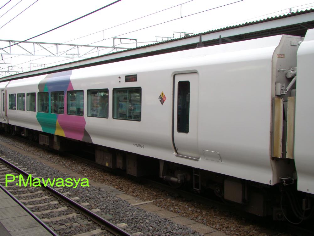 伊豆急下田方の非貫通構造の制御車(1号車)で、クハE256-1~の更新改造車です。原番号に2000番を加えています。乗降扉後方の窓が埋められていますが、ここが大型荷物置き場となっています。