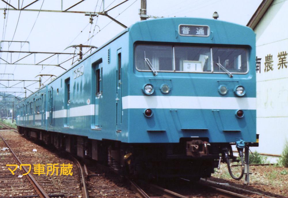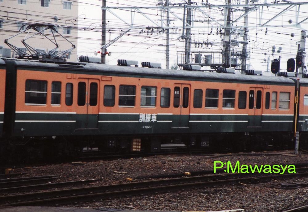 103系モハ102形式を改造した訓練車で、他の車輛は白帯と訓練車の文字を追加したのみとなっています。3両又は4両編成で各車輛基地に配置されました。車内の座席を一部撤去し、ミーティングスペースや訓練用資材置き場に改造しています。