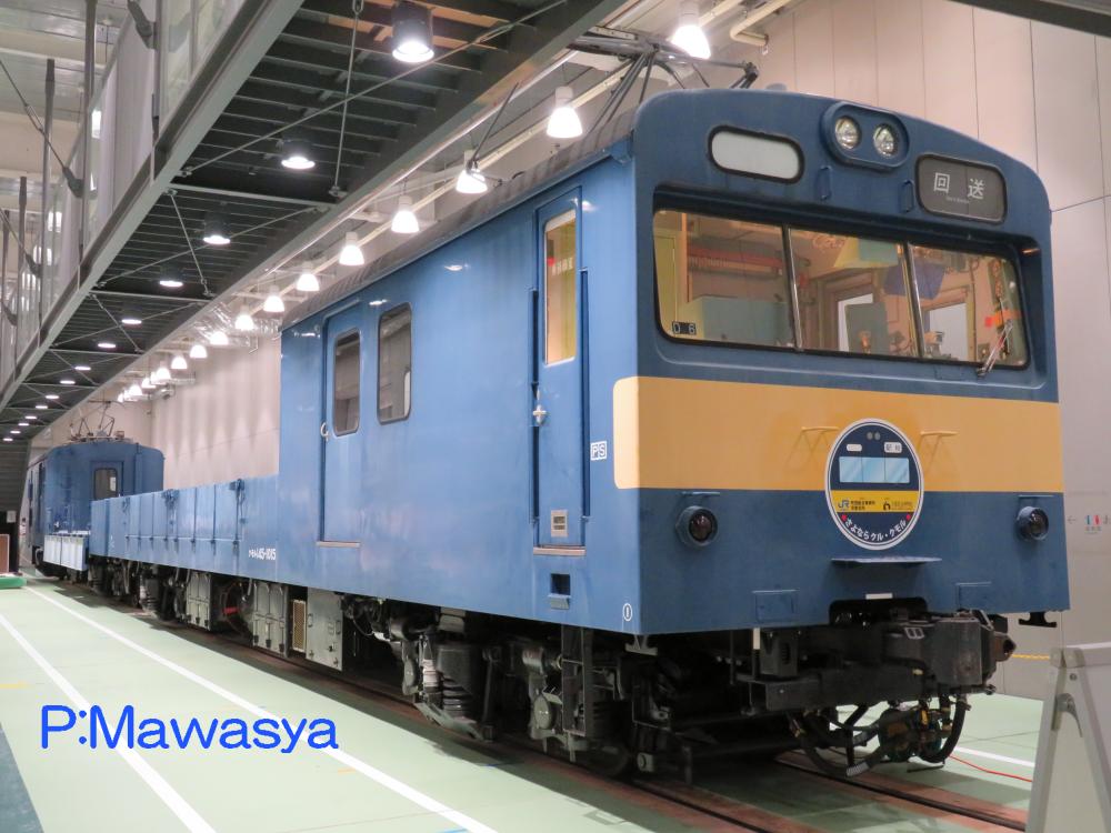 昭和49年に登場した教習車で、153系サハシ153形式を改造した事業用制御車です。客室を運転実習室とし、主制御器等(主電動機、電動空気圧縮機、電動発電機を除く)の床下機器を配し、作動状況を見る事が出来ます。この他に回路図等が設置されました。種車の前後には運転台が設置され、切妻形ですが急行形や近郊形電車に近いスタイルとなっています。