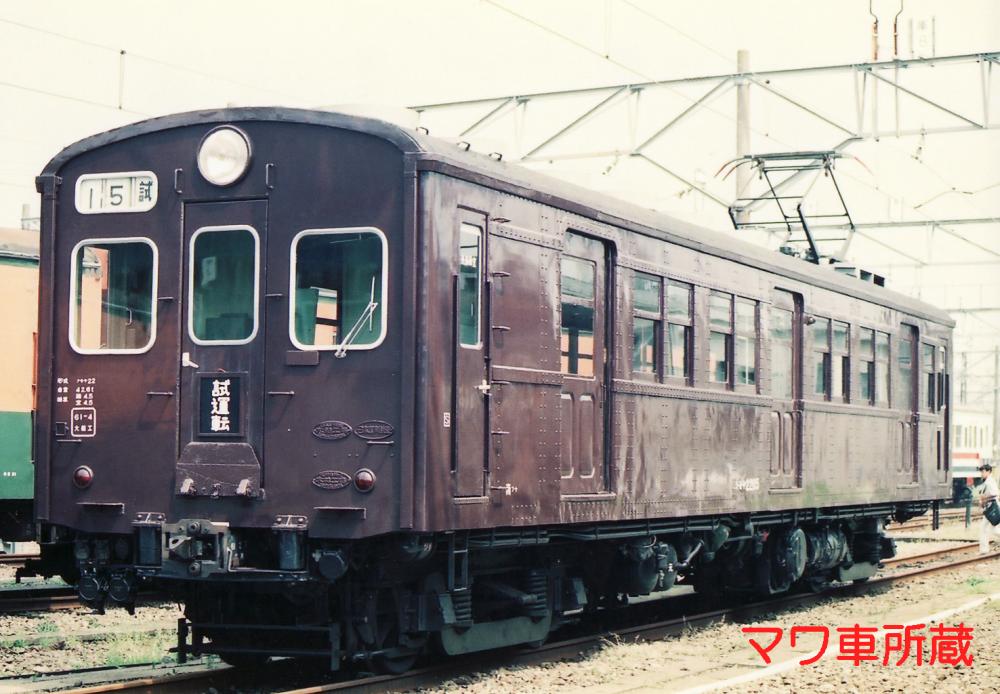 015番で、霜取り用パンタグラフを装備し2基のパンタグラフを持った変形車でした。この車輛を低屋根構造に改造したもので、屋根周りが独特の形態となっているのが特徴です。