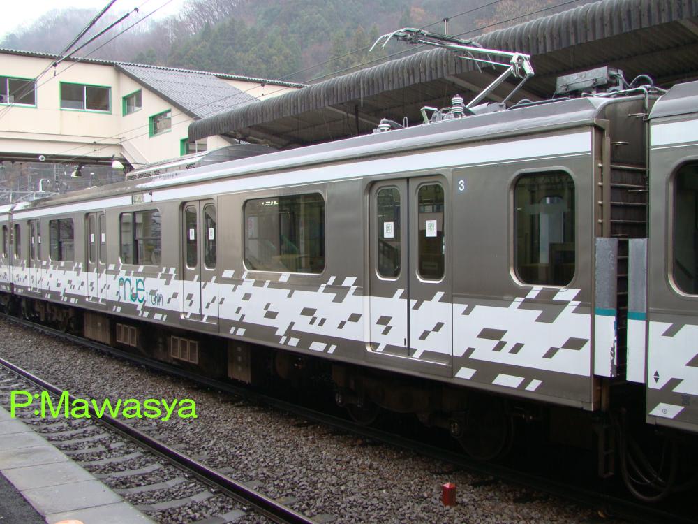 3号車に位置する中間電動車で、車体はステンレス製のダブルスキン構造となっています。構体の溶接には世界初となる、レーザー溶接を採用しています。床下にはVVVFインバータ装置を搭載しています。車内はロングシートを配しています。