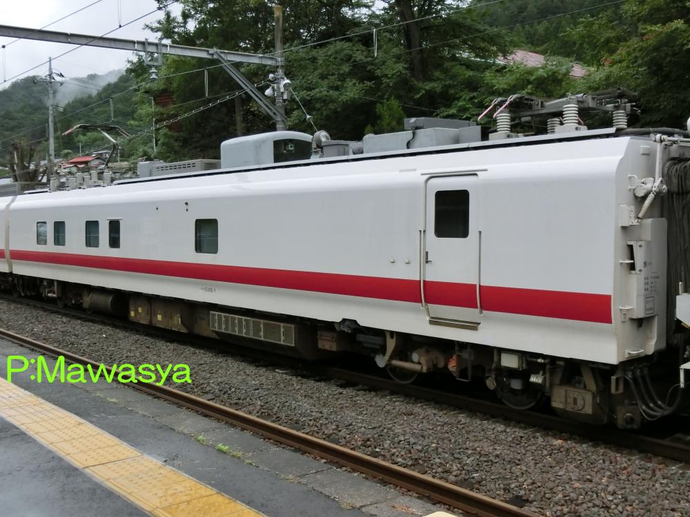 電力関係の検測を行う車輛です。シングルアーム式のPS32A形式パンタグラフは集電用で2基搭載されています。編成の進行方向に応じて、一方のみを使用します。観測用ドーム、投光器、架線支持点位置検測器、トロリー線摩耗偏位測定装置が搭載されています。車内にトイレの設備があります。
