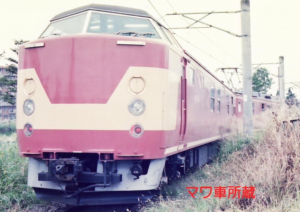 昭和41年に架線検測用の試験車として登場した495系交直両用電車を改造したグループです。495系は急行形交直両用電車をベースにした、前面非貫通構造の車輛で、電気機器類やブレーキシステムは483系特急形交直両用電車をベースにした車輛です。前面の3枚窓、裾絞りの無い独特のスタイルが特徴です。