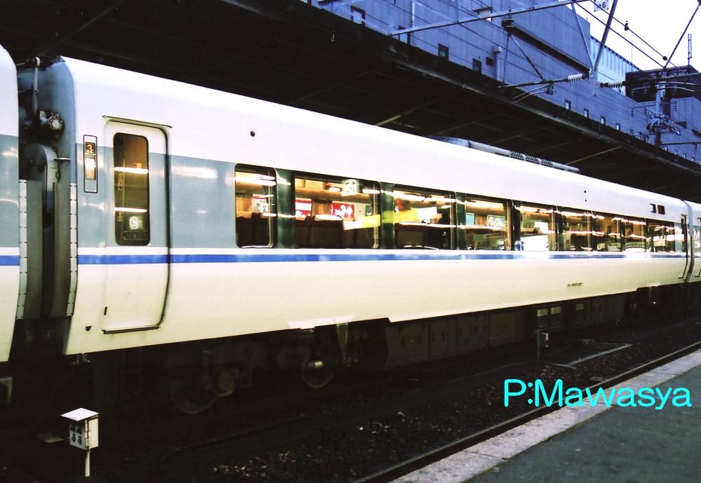 6両基本編成の金沢方に位置する非貫通構造の制御車(グリーン車)です。写真は大阪方に位置していた頃の様子です。前位側にトイレ、洗面所の設備があります。
