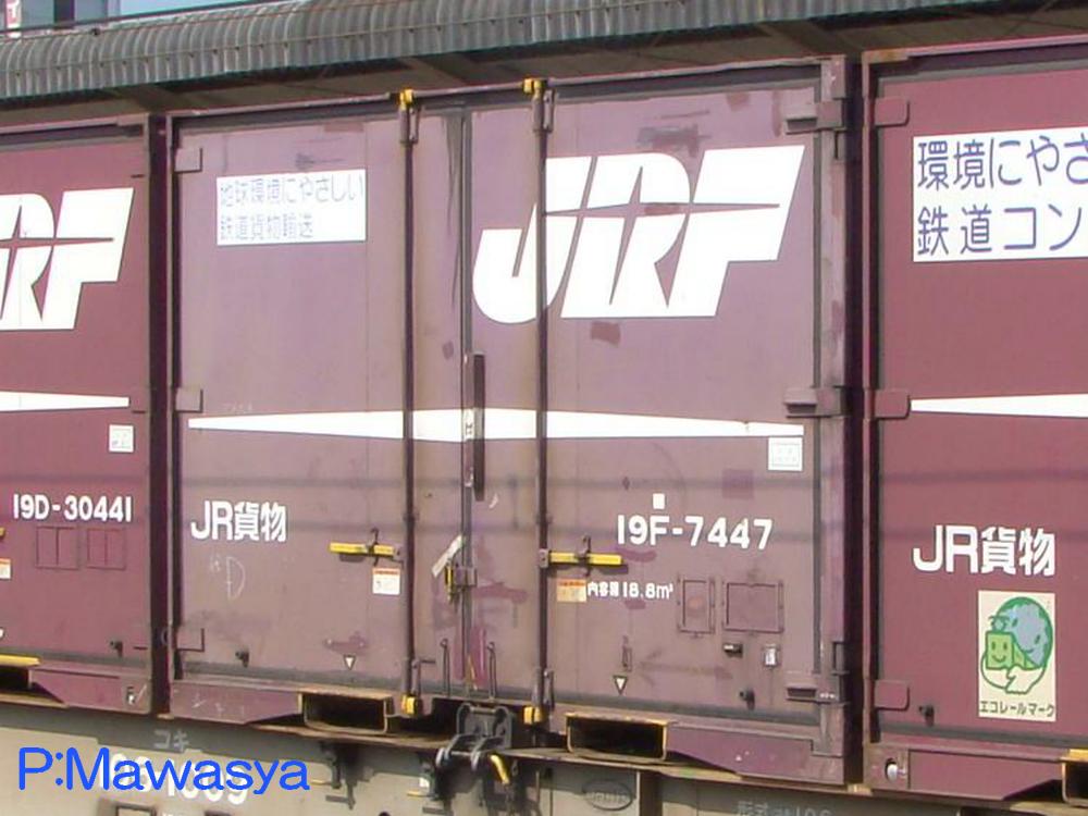 0番代と同じ妻面のリブは7本、側面のリブは12本、扉のヒンジの数も2つと変化はありません。屋根に変更があり、リブ付きになりました。標記は横書きから見易さを良くするため、リブ上に形式と個体番号を分けた縦書きに変更されています。また、扉には「地球環境にやさしい鉄道貨物輸送」というPRステッカーが貼られています。
