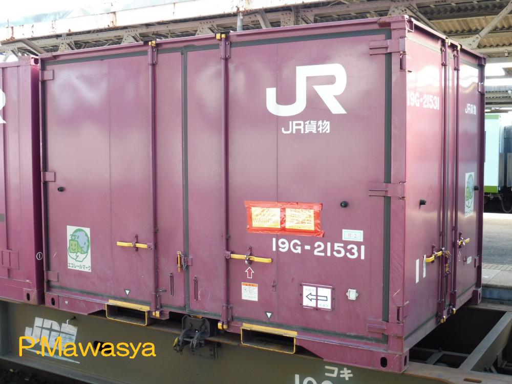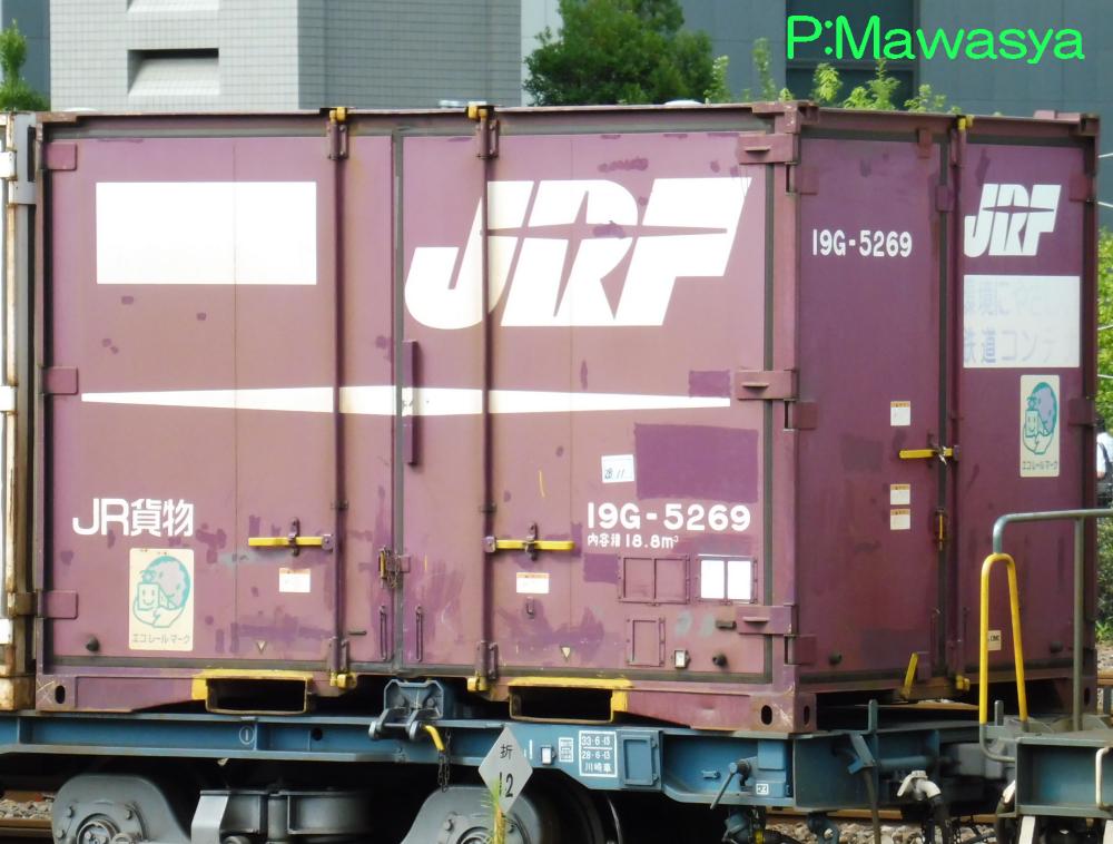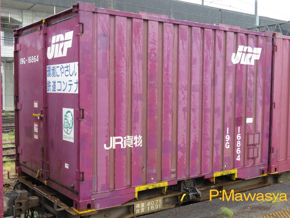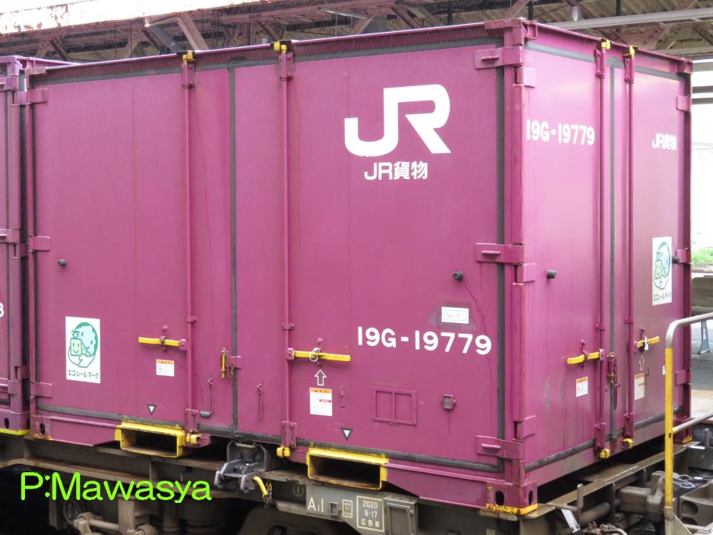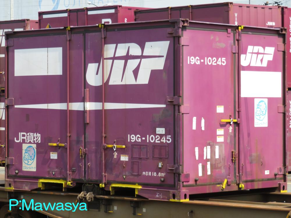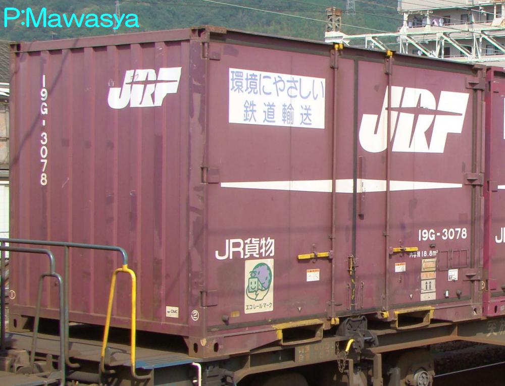 19G形式の営業用からの転用は写真左の死重を搭載したZD19G形式のみとなっています。PRステッカーは「環境にやさしい鉄道貨物輸送」が貼られています。