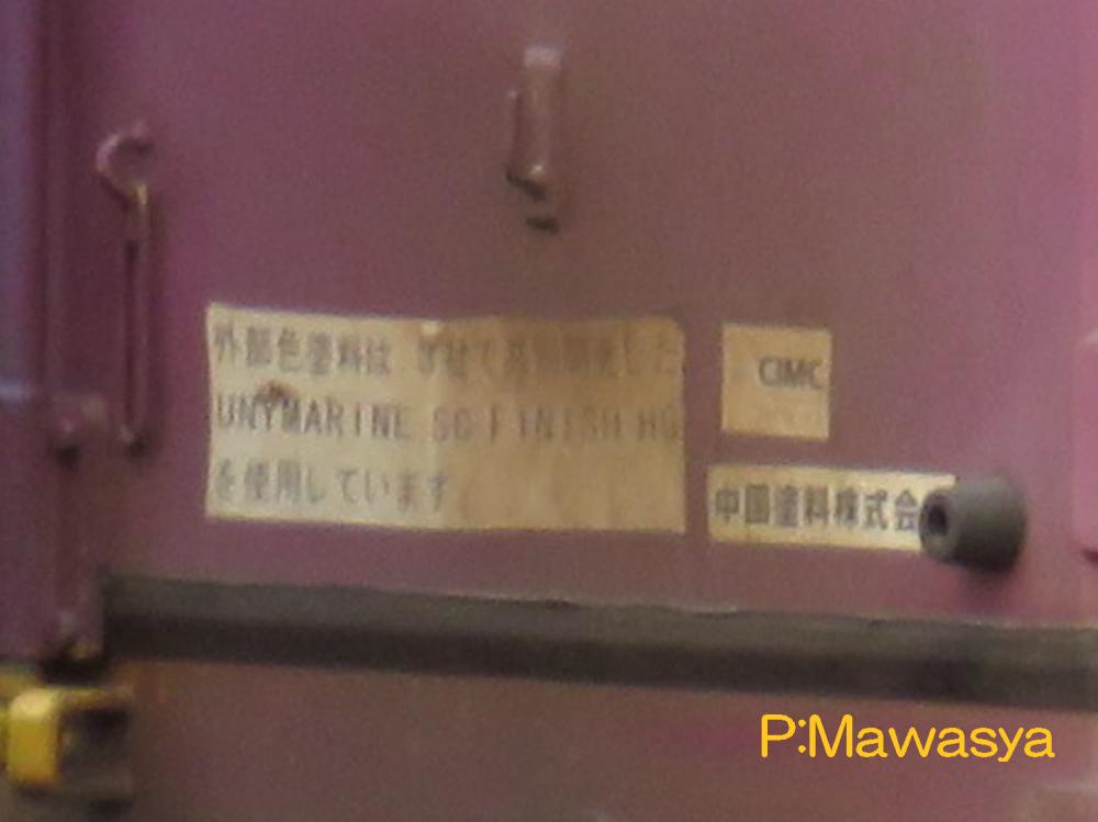 個体数は不明ですが、2位側妻扉に「外部色塗料は、当社で共同開発したUNYMARINL SC FINISH HGを使用しています」と書かれたステッカーが貼られ、その隣に中国塗料株式会社と書かれています。この会社は広島県の大手塗料メーカーで、試験的に塗られたものと推定されます。