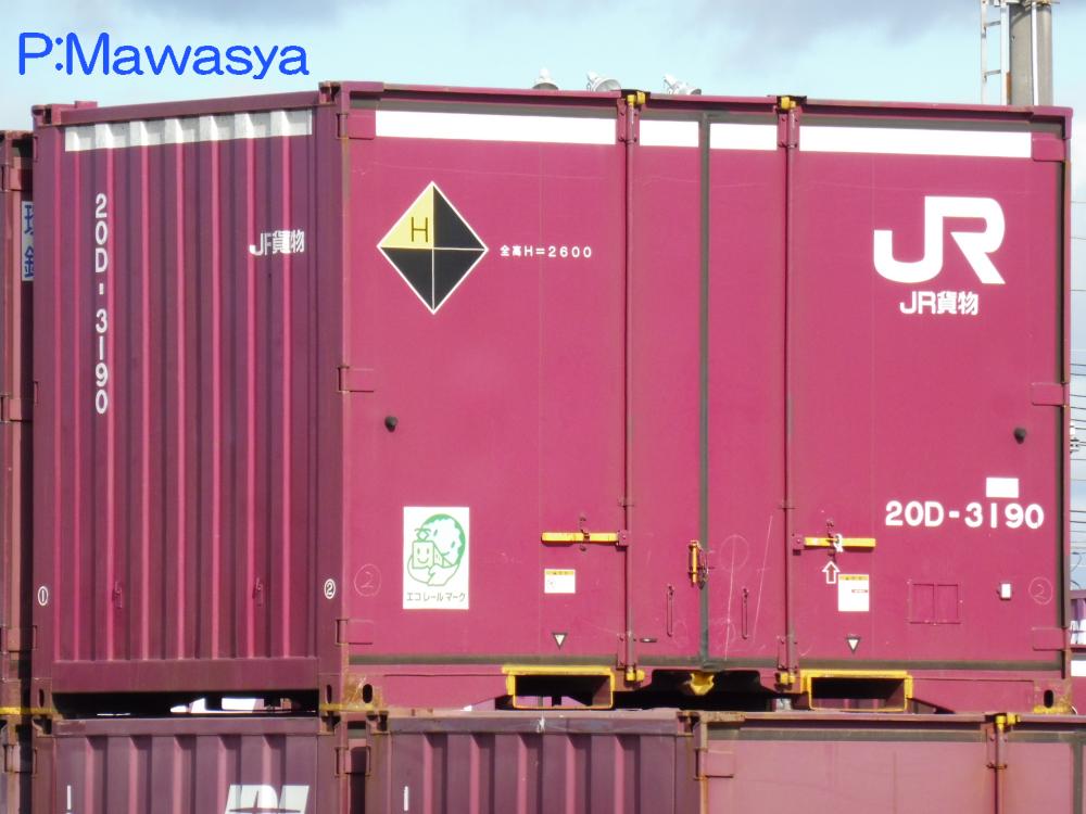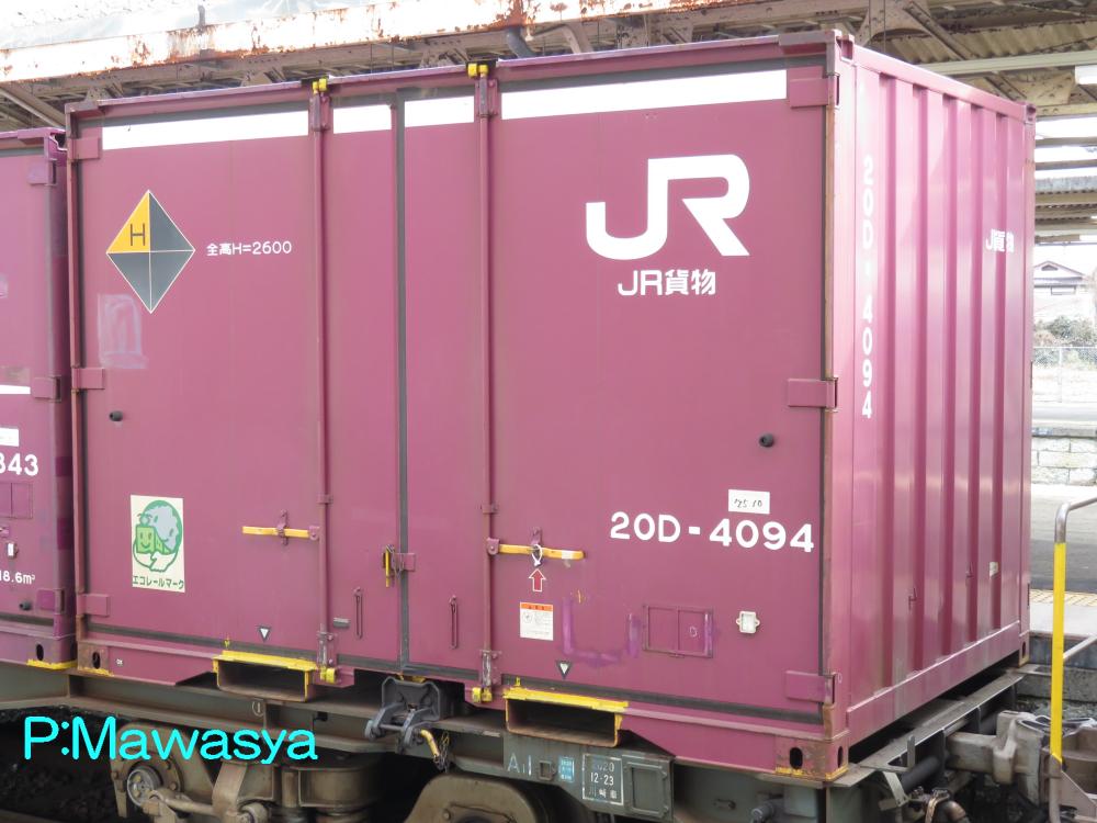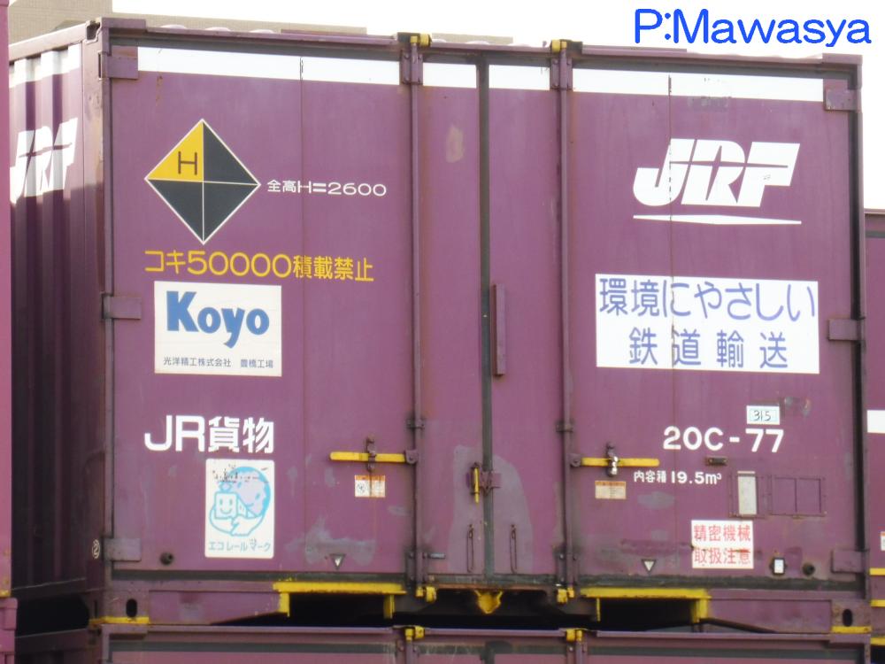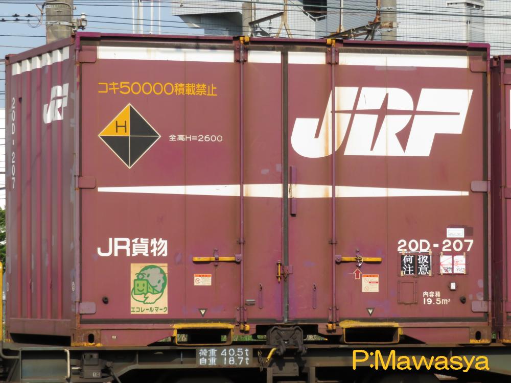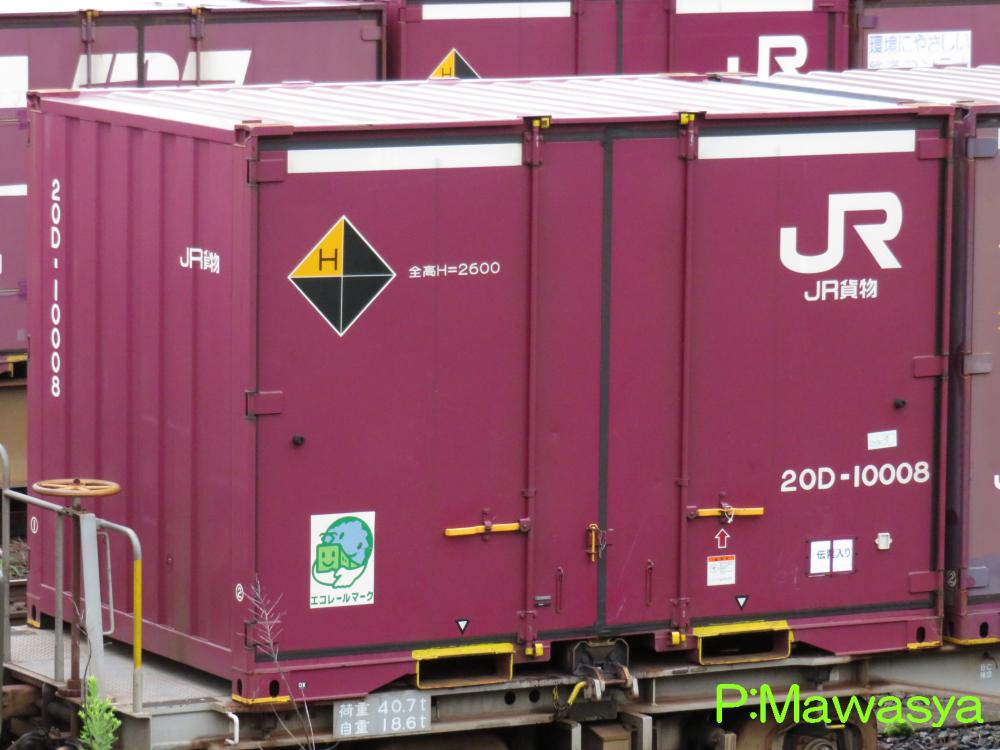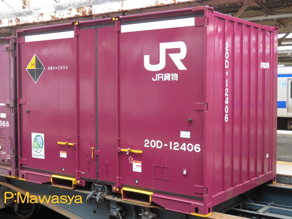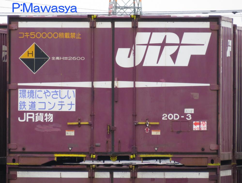 コンテナの上部を背高コンテナを示す白帯が配置され、側面には「コキ100系貨車限定」、ハローマークが添付されています。コキ100系限定ですが、特例区間においてはコキ50000形式による輸送も行われていました。