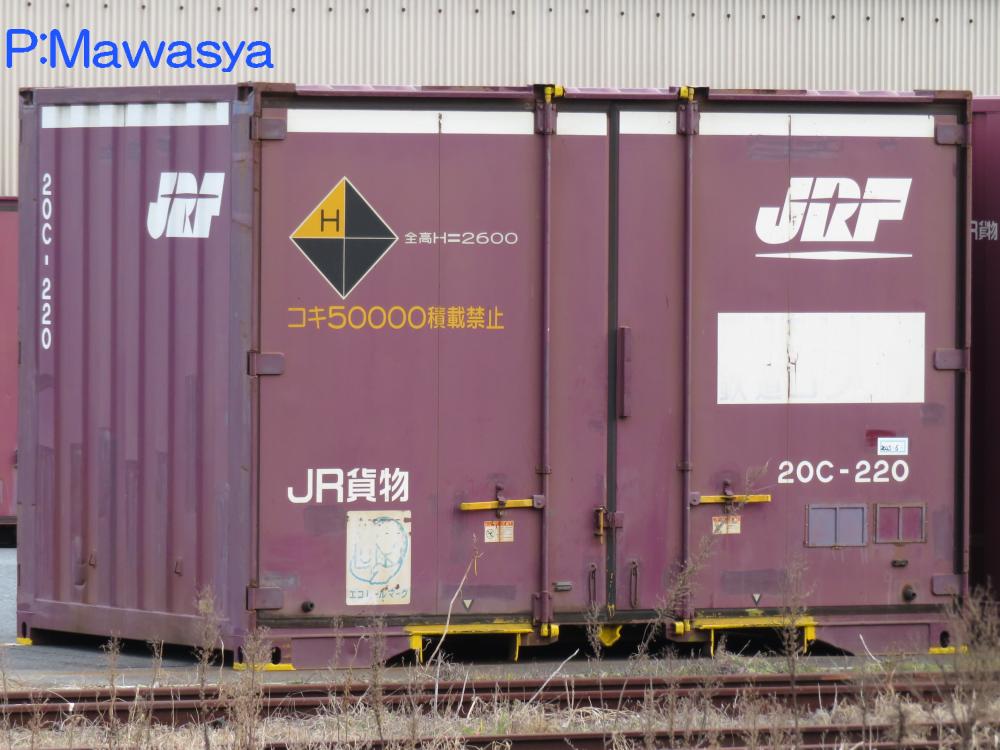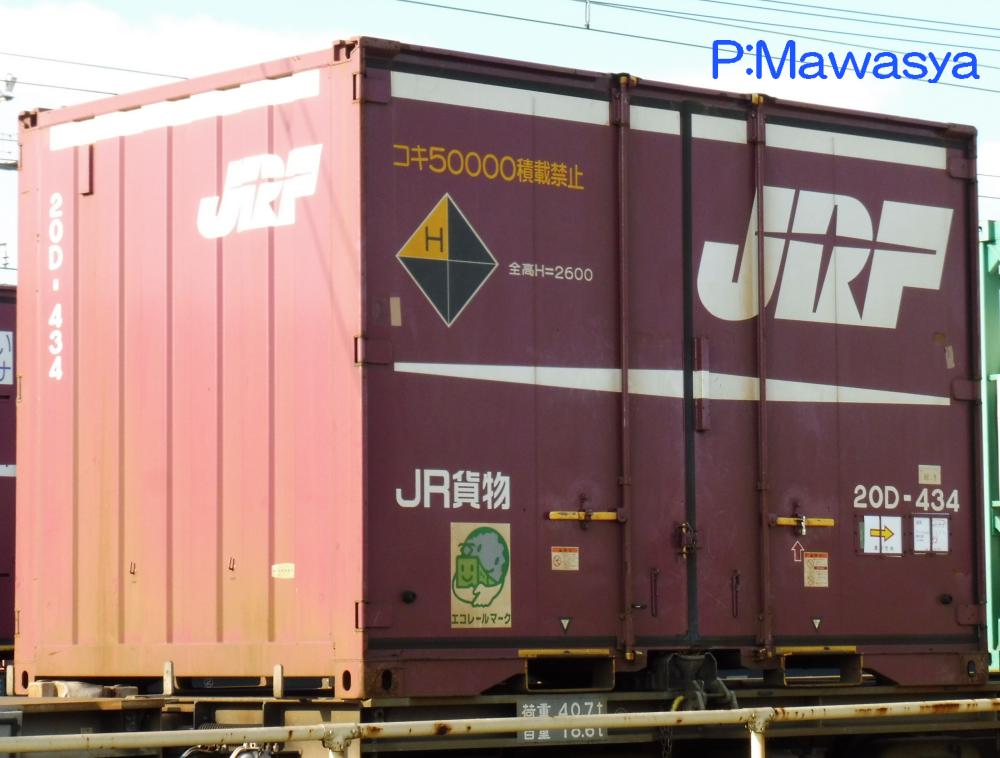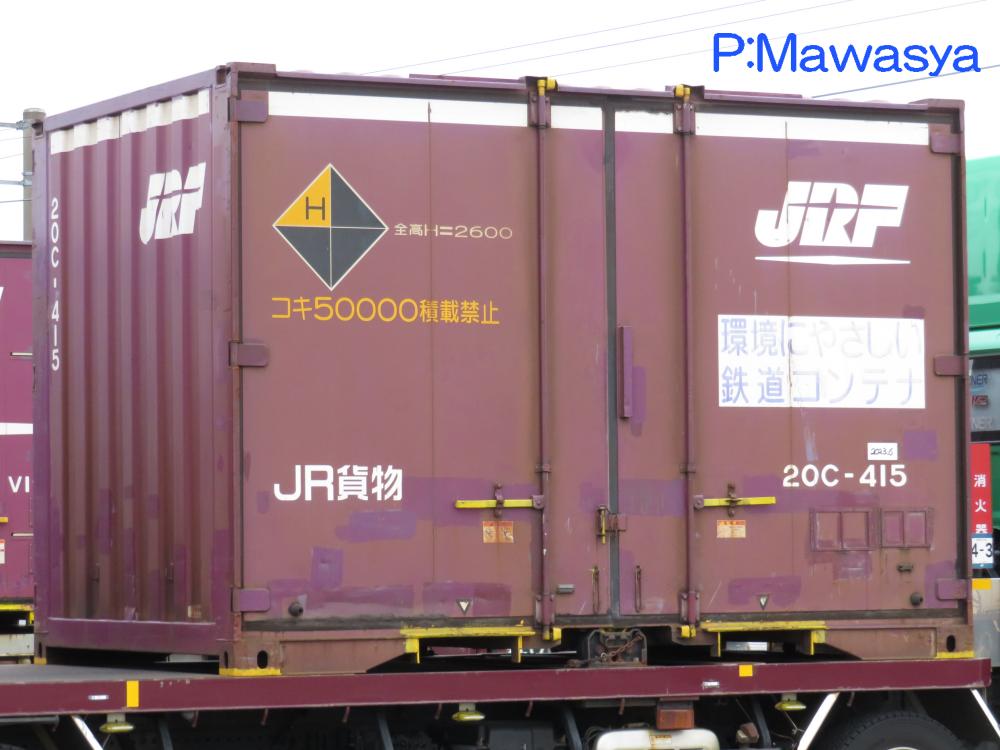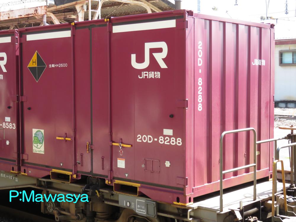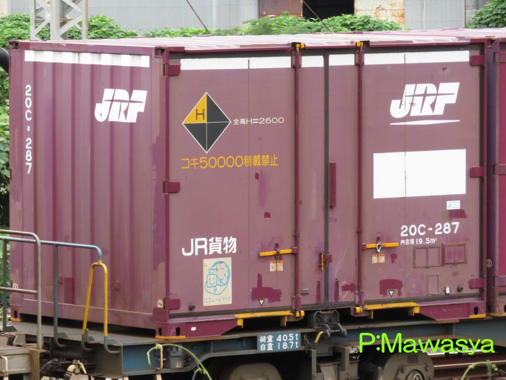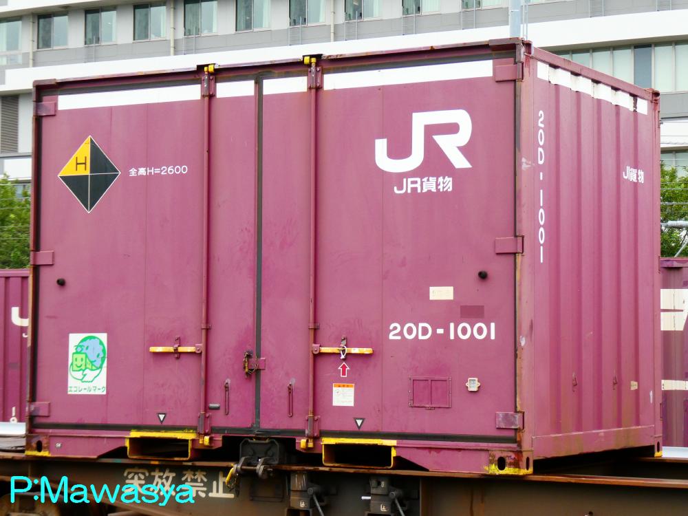 コンテナの上部を背高コンテナを示す白帯が配置され、側面には「コキ100系貨車限定」、ハローマークが添付されています。コキ100系限定ですが、特例区間においてはコキ50000形式による輸送も行われていました。