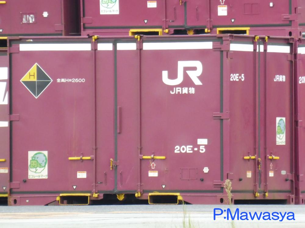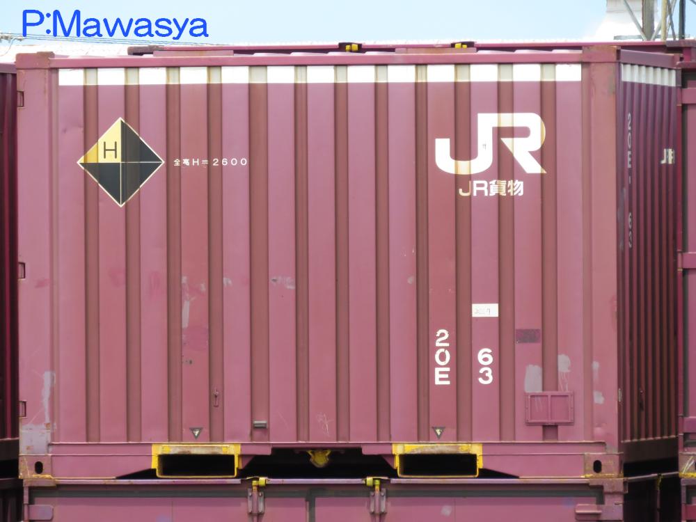 20E形式をコピーしたと言っても過言ではないほどそっくりです。見分ける違いとして、側面リブ側の背高コンテナを意味する白帯の長さで、前位側の梁に施されていません。