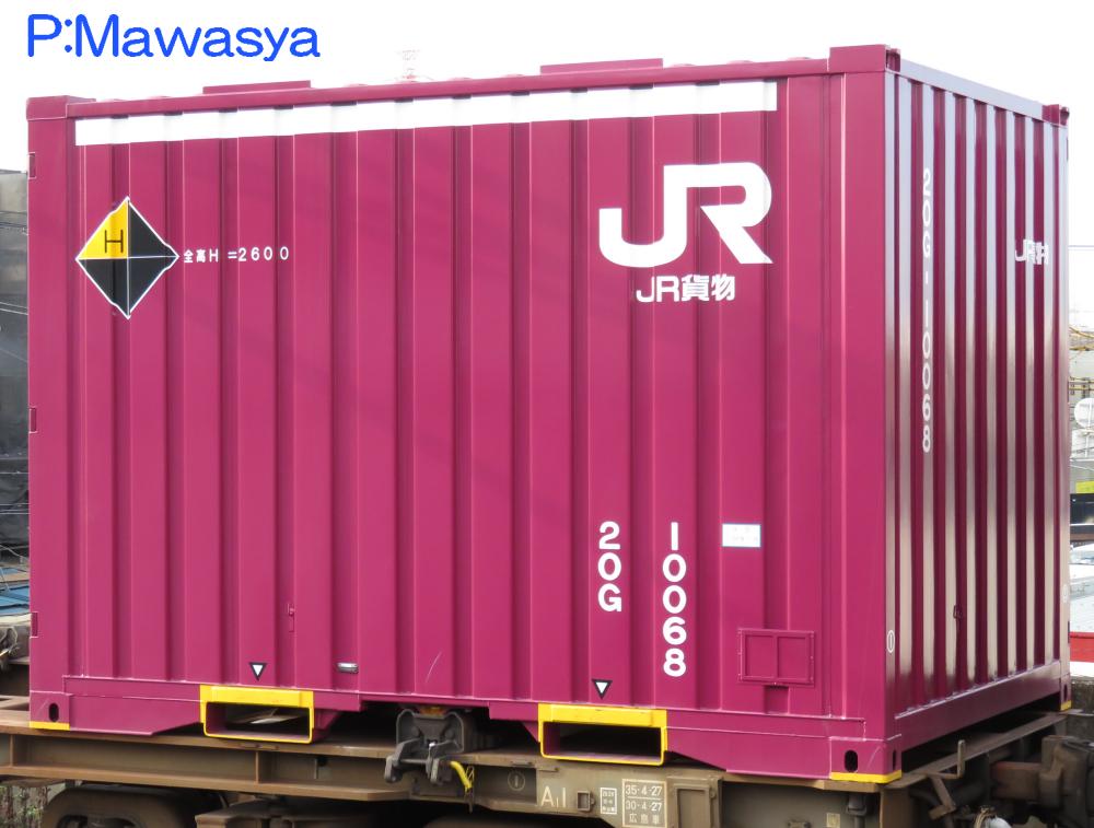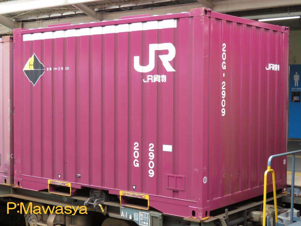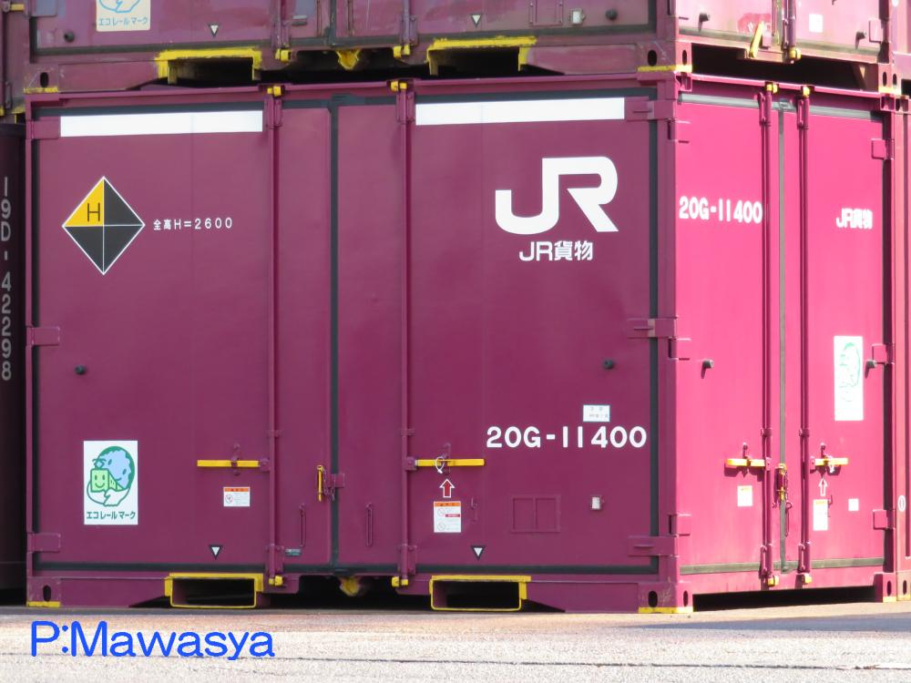 19G形式、20B形式の後継形式として平成26年に登場し、150個製作されました。構造は妻一方、側一方のL字二方開きで、19G形式を拡大したスタイルとなっています。コンテナ内には荷崩れ防止金具(ラッシング)が設置されています。