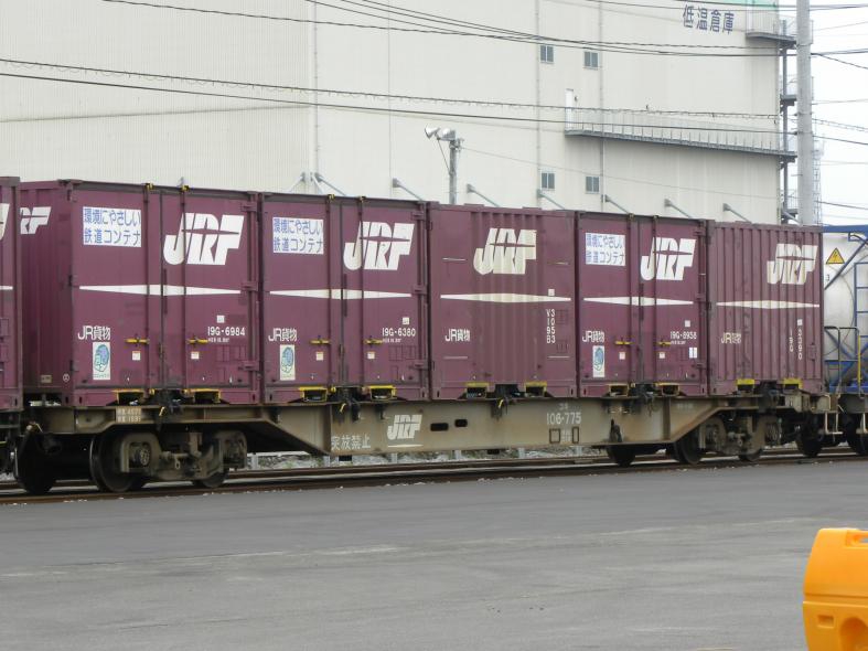 昭和60年に登場した番代で、391両登場しました。1000tコンテナ列車を1200tまで引き上げ輸送力増強を図る事となり、ブレーキ装置を改造したもので、応答性を高めるために指令変換弁が追加され、空走時間の短縮を図っています。改造後は原番号に200000を加えています。この車輛で組成し、1000tまでの列車に限り、牽引する機関車を限定する事で運転最高速度100km/hが可能となりました。当初は塗装変更はありませんでしたが、東北・北海道方面で活躍する際に淡緑色に変更しています。コキ100系が投入されると一般車との混用となり、コキ107形式増備により、保守面で手間のかかる本番代は平成24年に廃車となり、番代消滅しています。