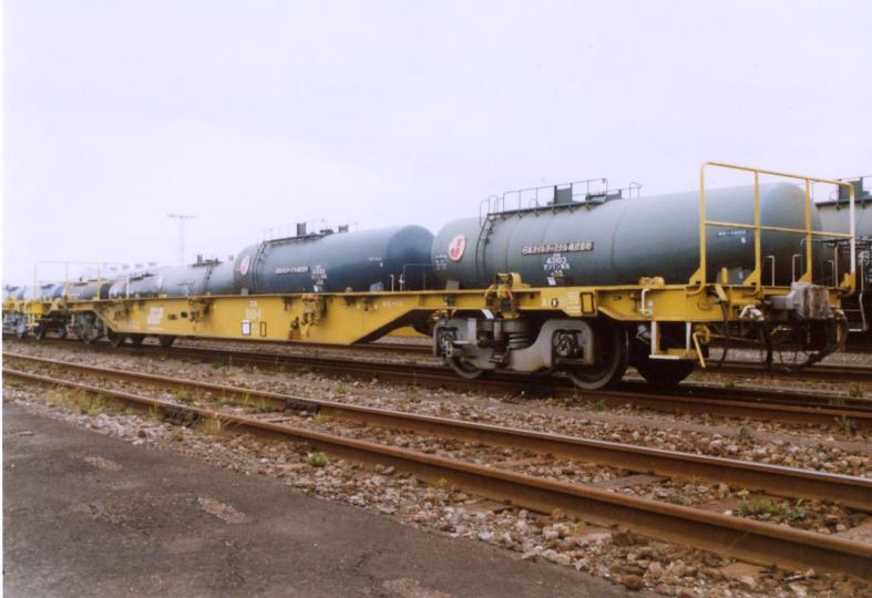ブレーキ装置をコキ10000系と同じCLE方式(応荷重式電磁自動空気ブレーキ方式)に改造し、台車も基礎ブレーキ装置の改造を行いました。車体は識別のため黄かん色(山吹色)に変更、台車も灰色としています。(改造した工場によっては台車が黒色など差異がありましたが、統一しています。)