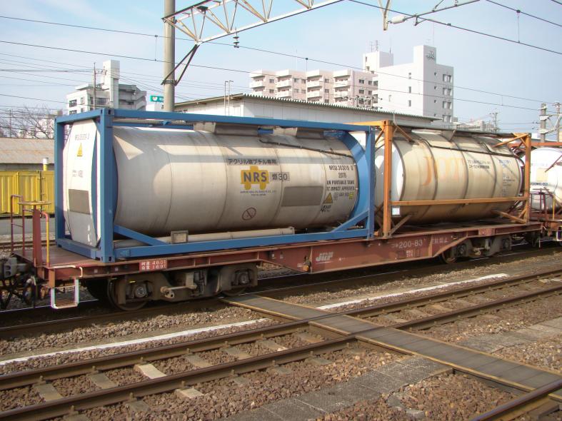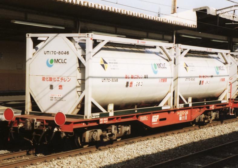 石油精製品や化成品などは専用のタンク車によって輸送が行われていました。車輛の構造上により運転最高速度75km/hであったため、速度向上が難しく、ダイヤ作成上のネックともなっていました。一方で経年劣化が進み、置換えも考えなければならない車輛も多く出てきました。そこでJR貨物では、荷主に20ftISOコンテナの使用を提案し、平成8年からISO規格で設計されたタンクコンテナが出てきました。