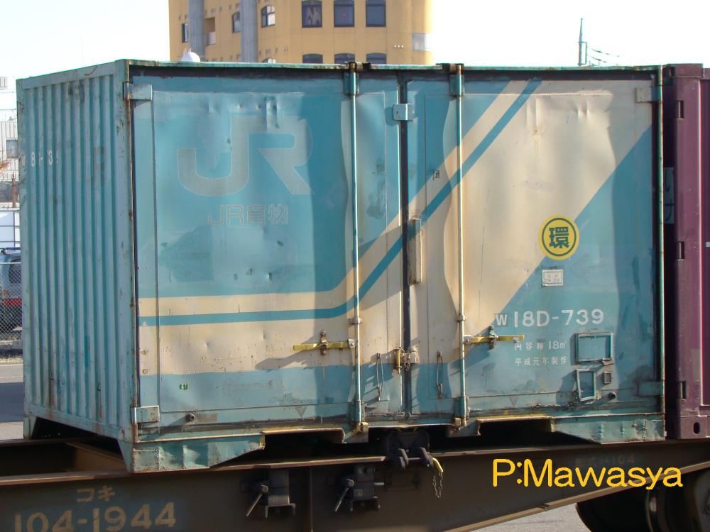 平成13年に登場したもので、18D形式を産業廃棄物(静脈物流)専用としたものです。貨物の中には悪臭を放つものがあり、他の貨物との併用が難しい事から、雨漏り等の軽微な不具合が見られ、営業用に供せなくなった18D形式を対象に選定し、用途を限定したものです。対象となった個体には形式の前に廃棄物を意味する「waste」の頭文字「W」を追加し、付近に黄色地に「環」と書かれたステッカーを追加しています。