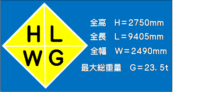 | 最大長 | 最大幅 | 最大高 | 最大総重量 | |