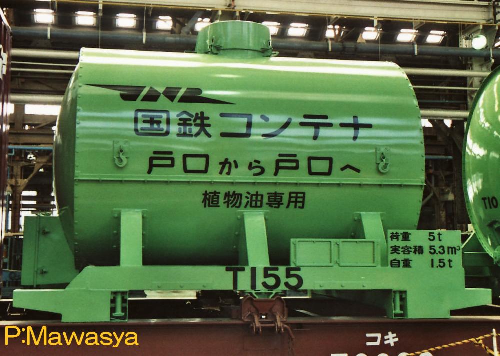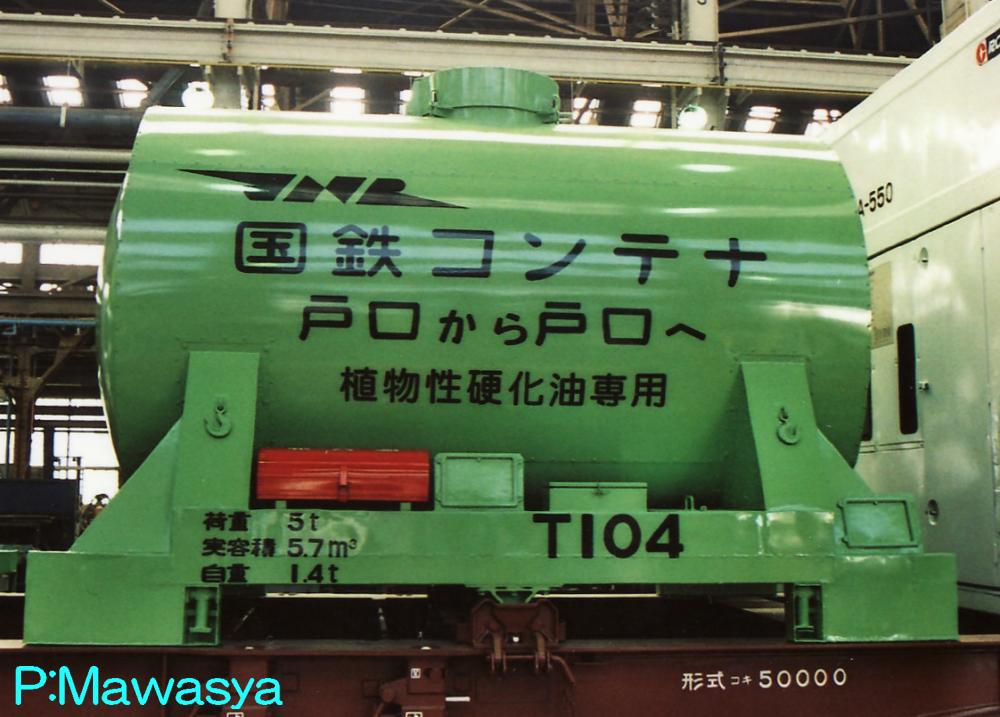 昭和43年に登場したタンクコンテナで、6個製作されました。専用種別は植物油ですが、実際に輸送していたのはラテックスです。タンク体はステンレス製で、タンク内はエポキシ樹脂によるコーティングが施されています。