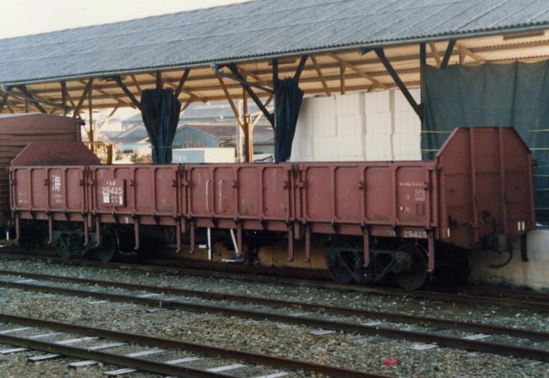 汎用無蓋車として、昭和59年ダイヤ改正も生き残り活躍を続けていましたが、JR貨物になってからは車扱い貨物列車のコンテナ化などにより用途が減少。現在は事業用車(配給車代用)で僅かに残っています。