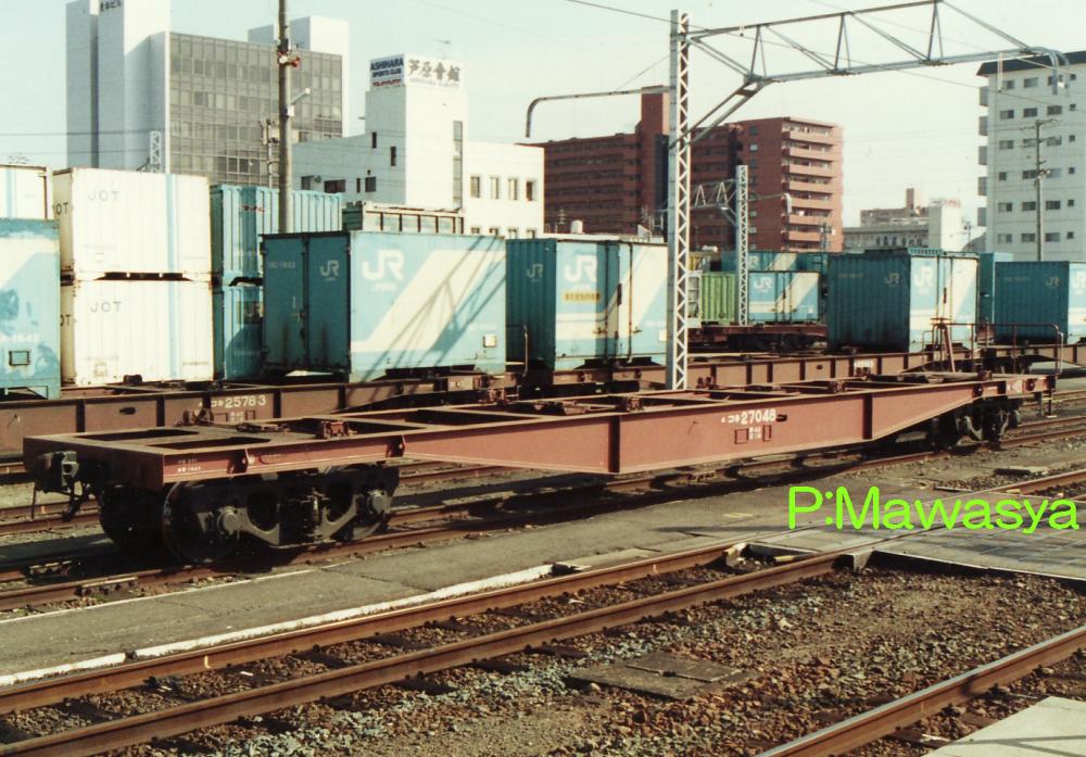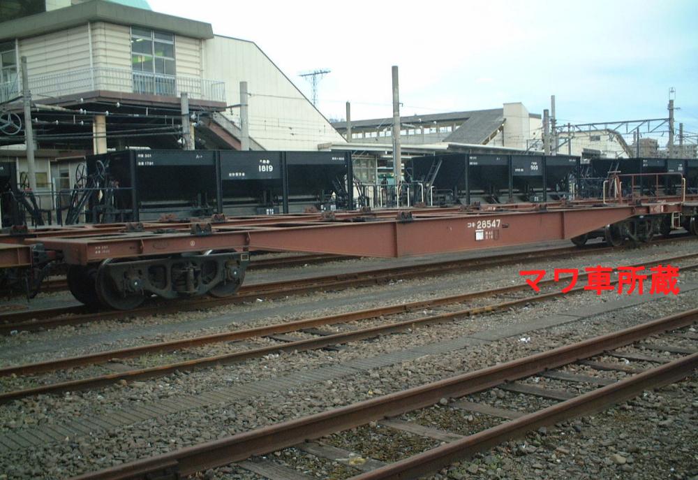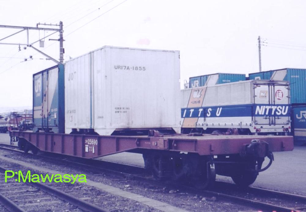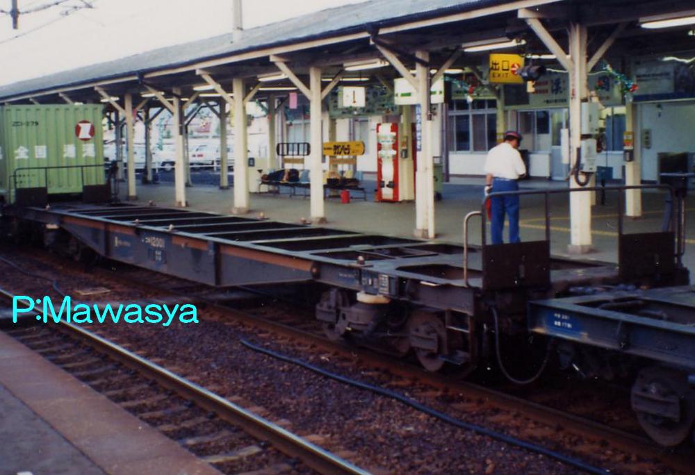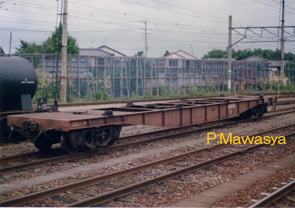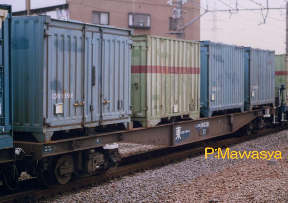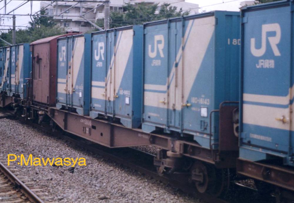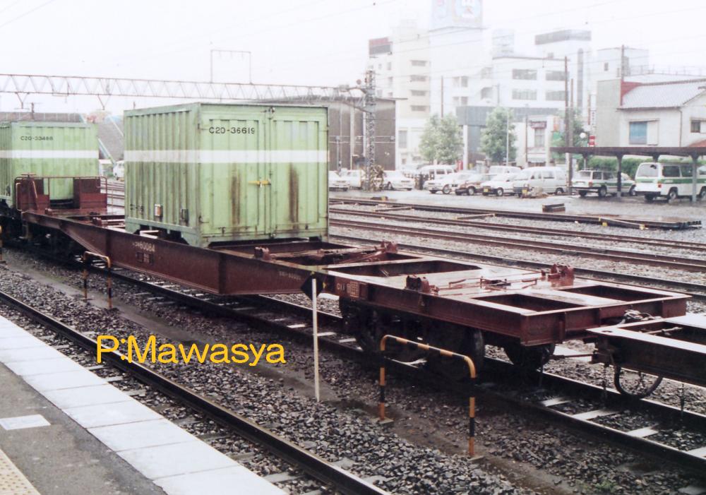 当初は10ft5tコンテナ5個を積載出来ましたが、昭和46年に規格が変更され、12ftにサイズ変更。数が増えてくると本形式も対応する為の改造工事が始まり、12ftコンテナを4個積載出来るようにし、荷重も34tから28tに変更しました。改造工事受けた車輛には原番号+20000を加えて識別しています。