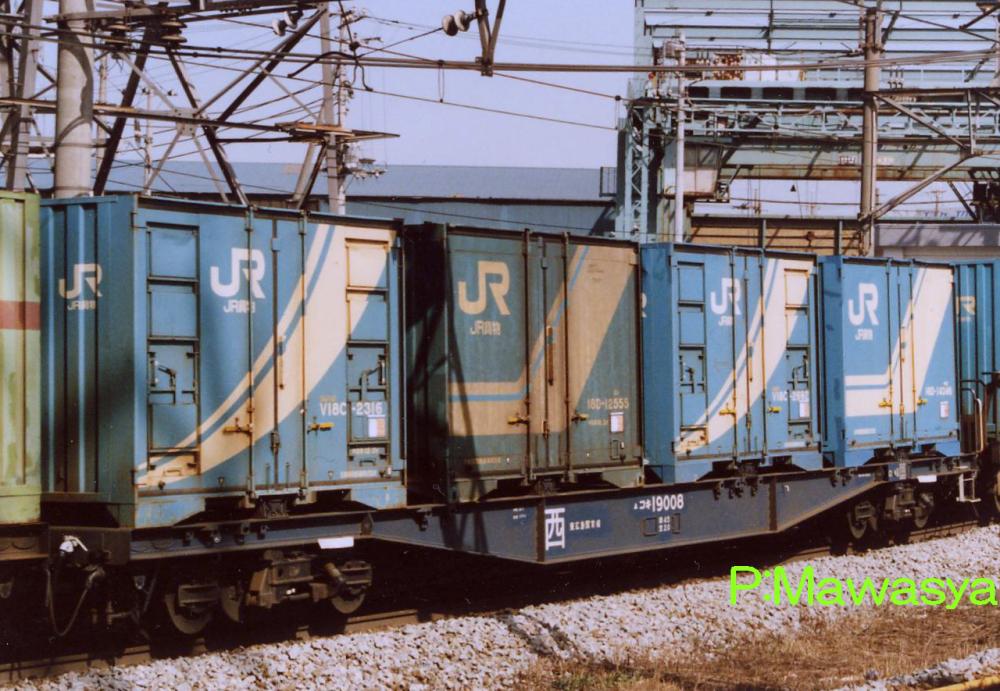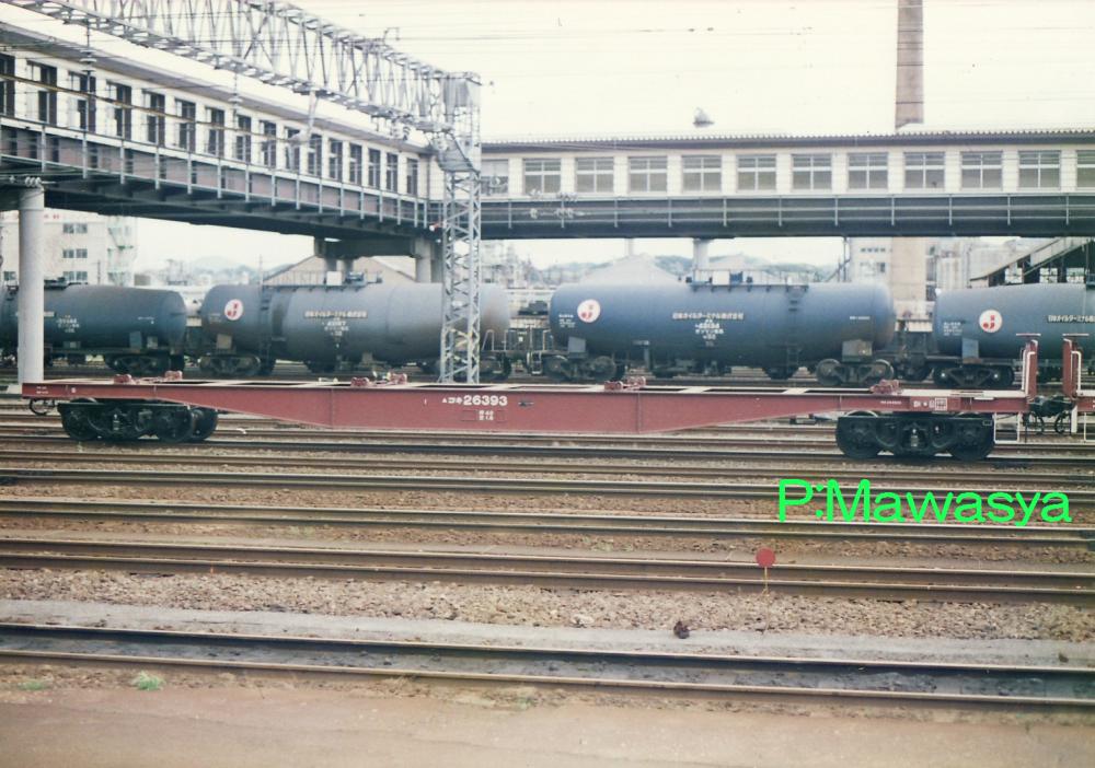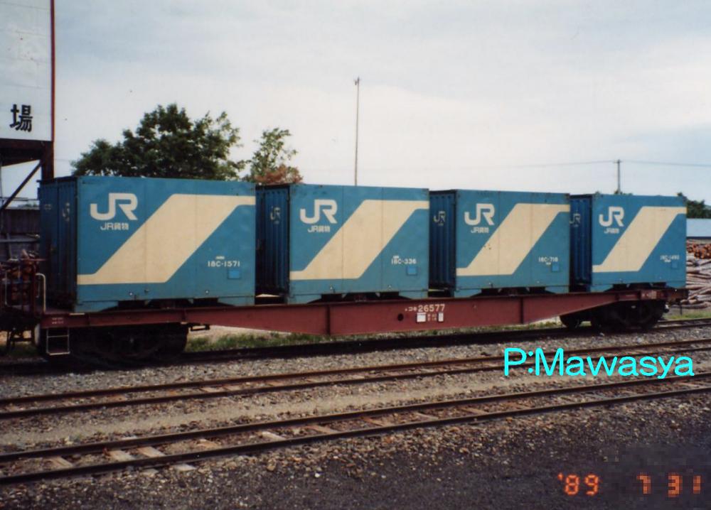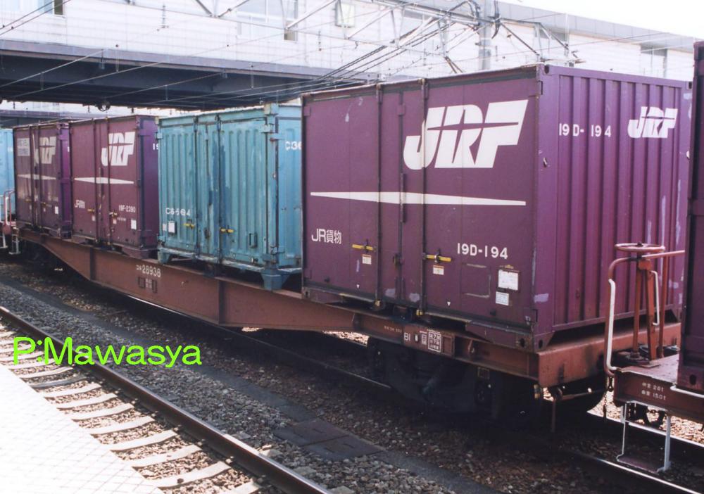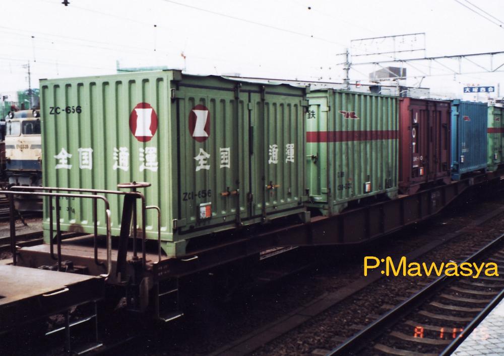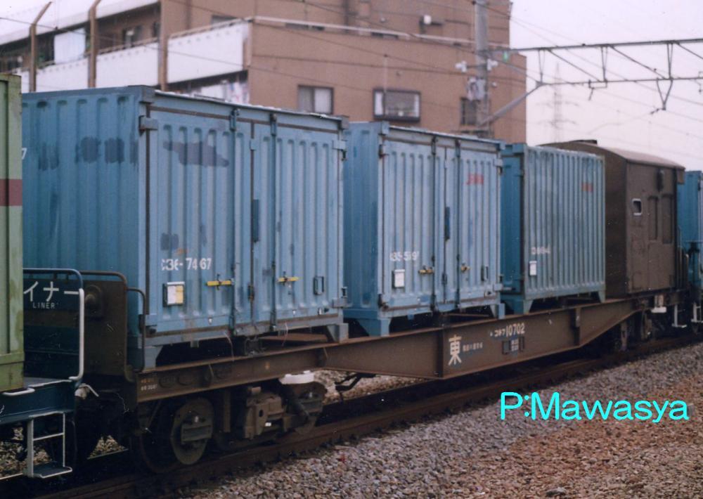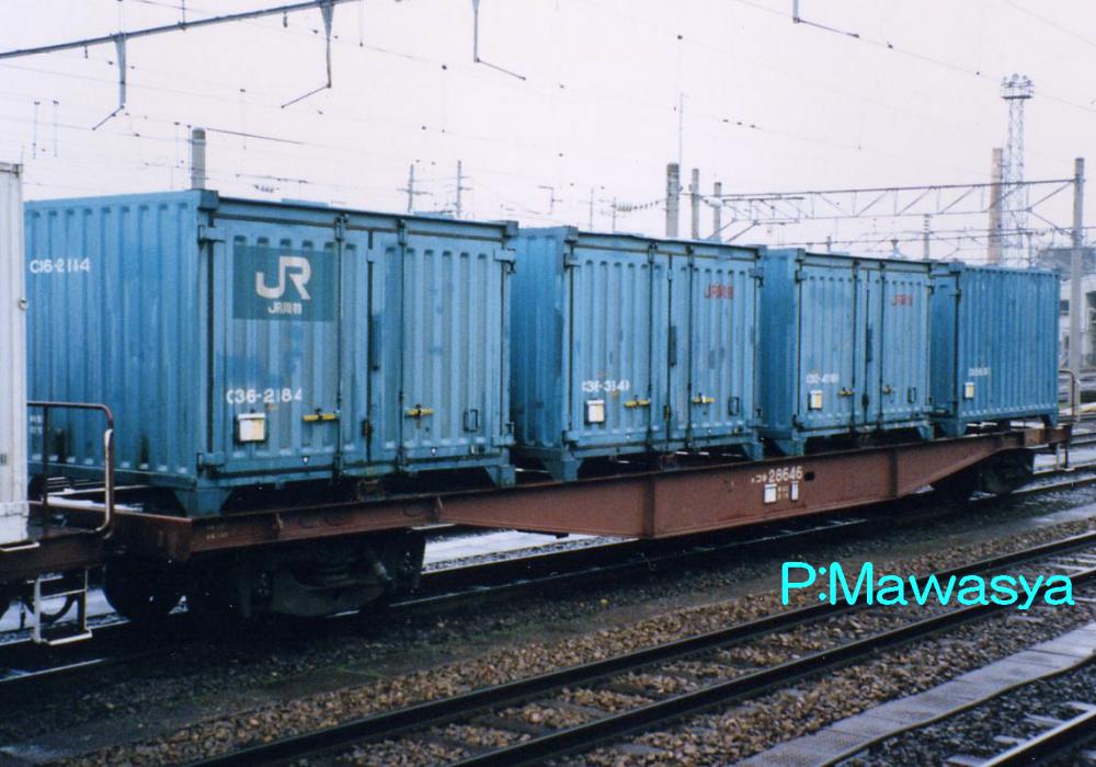 当初は10ft5tコンテナ5個を積載出来ましたが、昭和46年に規格が変更され、12ftにサイズ変更。数が増えてくると本形式も対応する為の改造工事が始まり、12ftコンテナを4個積載出来るようにし、荷重も34tから28tに変更しました。改造工事受けた車輛には原番号+20000を加えて識別しています。
