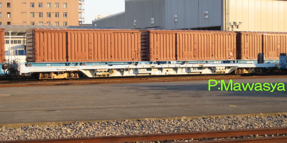 コキ50000形式・・・積載効率は良いが、ISOコンテナには対応せず。高速走行出来る改造車有り。