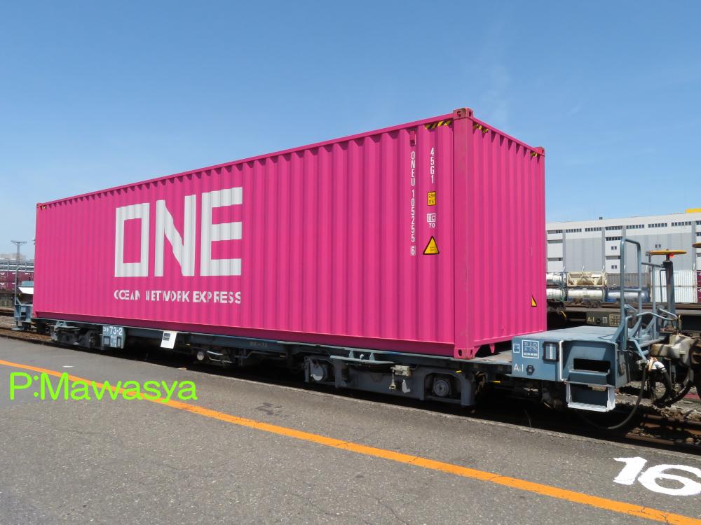 本形式の前期グループになります。1番は先行試作車で側梁の形状等異なる部分があります。赤い小さなコンテナ車ですが、運転最高速度110km/hの高性能貨車です。