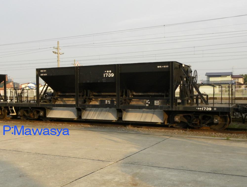 昭和49年に17両が製作されました。国鉄所有のホキ2200形式の派生形式の一つ。当時、人気の高かったホキ2200形式の配車不足解消を目的に製作されたもので、ホキ2200形式に似た設計ですが、車体は遮熱板が取り払われ、ホッパを支える支柱が特徴となる、えらが張った感じのデザインです。積荷を特定した為、荷重を5t増加しています。車体色は登場時は黒色でしたが、クリーム色(クリーム4号)に変更されています。平成8年に形式消滅しています。