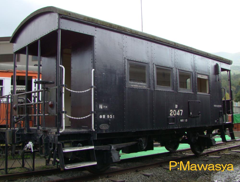 昭和12年から13年にかけて100両が製作された車掌車です。本形式登場以前の車掌車は「マッチ箱」と呼ばれる明治、大正時代に製作された木製二軸客車を改造した粗末な造りのものであった。本形式は新車として初めて設計されています。車体は鋼製、車掌車らしく両デッキ構造、車内は3人分の執務机、椅子、長椅子が設けられ、乗心地を考慮した設計が特徴となっています。この構造は後に登場する車掌車にも継承され、標準的な車掌車のスタイルを確立しました。